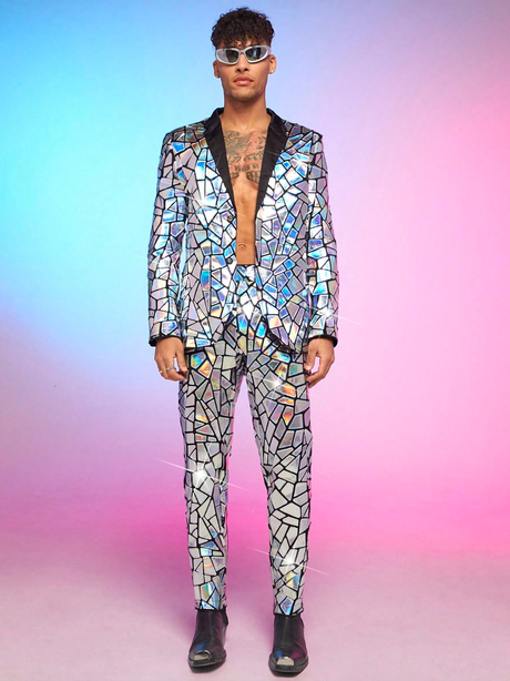 Men's Trousers Mirrored Holographic Pants and Blazer Set Suit Men's Outfits Party Outfit.