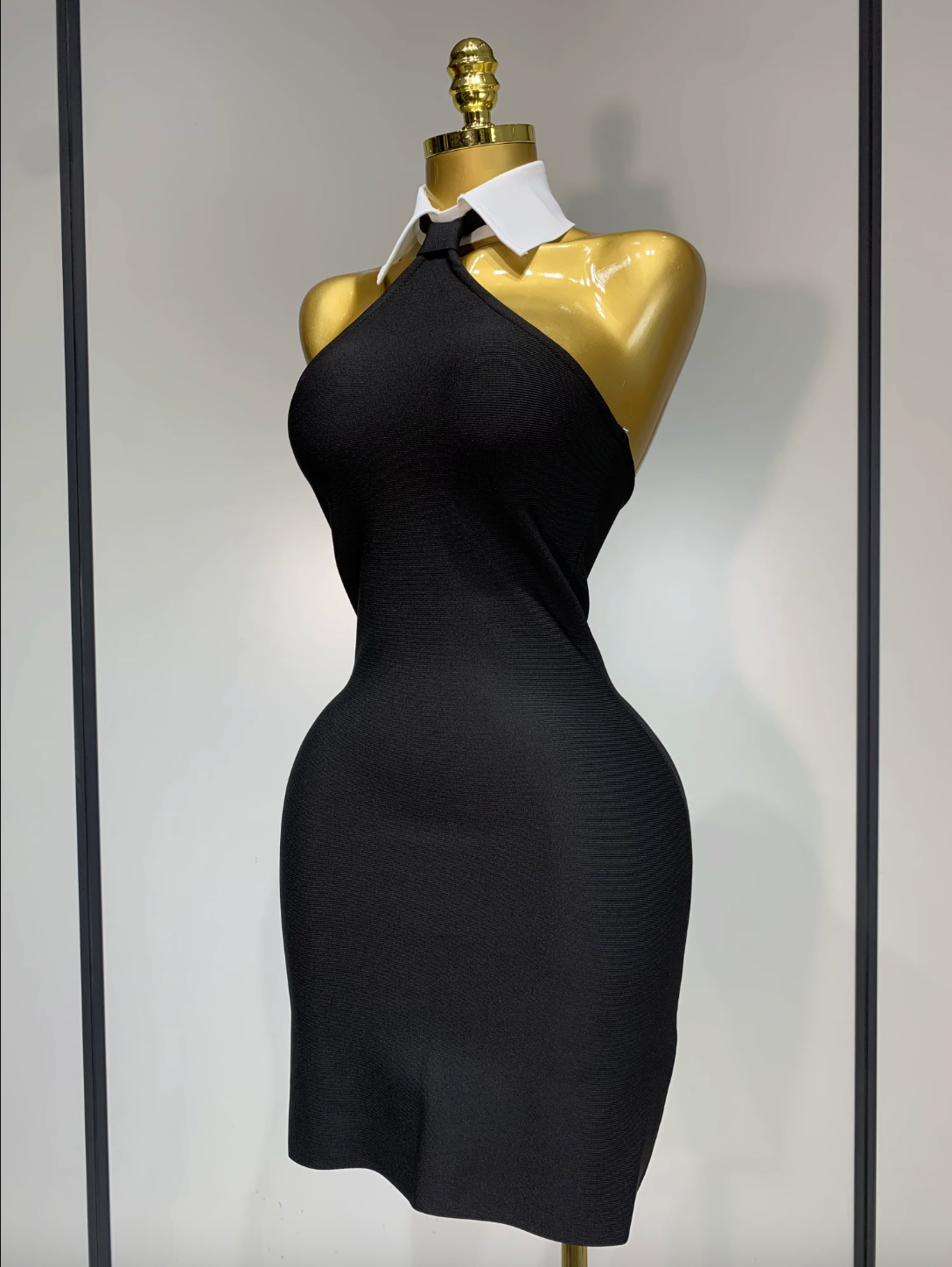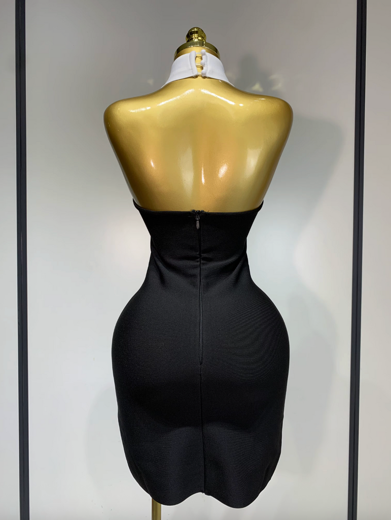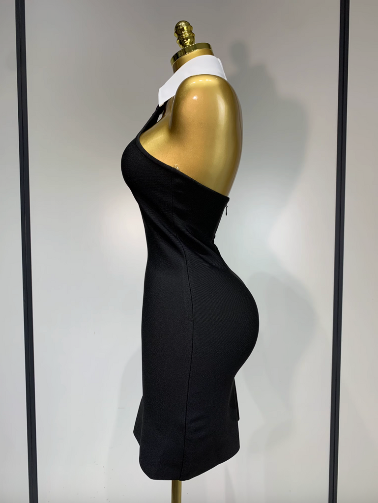 Black Dress Backless White Shirt Collar Black Mini Bodycon Black Bandage Dress Elegant Evening Club Party Luxury Birthday Dresses