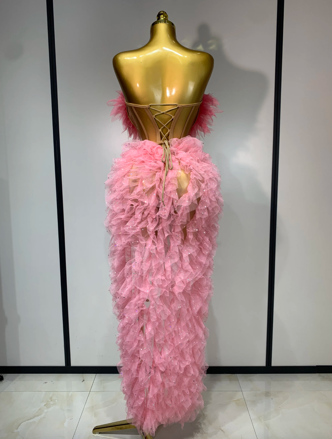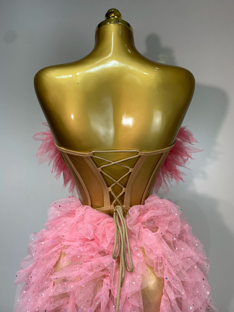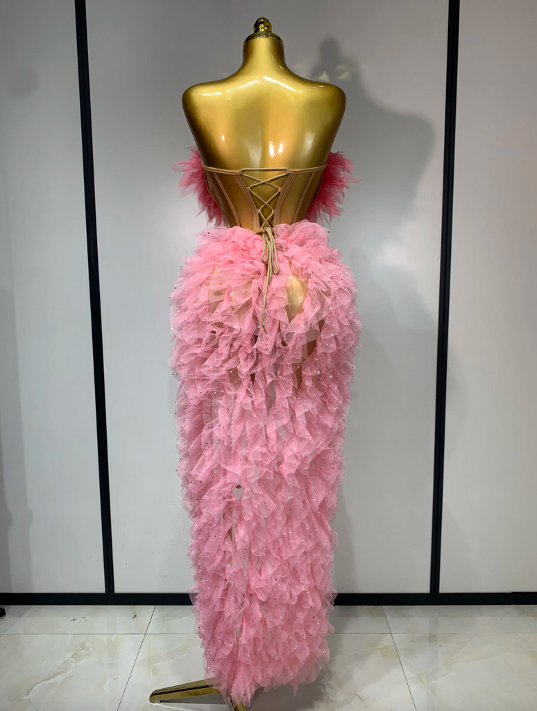 Pink Party Dress Women Corset Long Dress High Split Nightclub Party Birthday Dress Singer Stage Dress