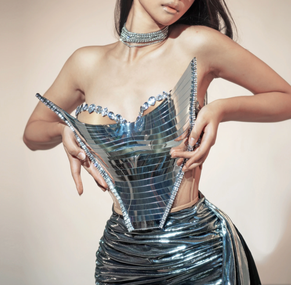 Birthday Dress Metallic Silver Gold Dress Corset Birthday Dress Party Rhinestone Metallic Skirt Set In Silver SANA
