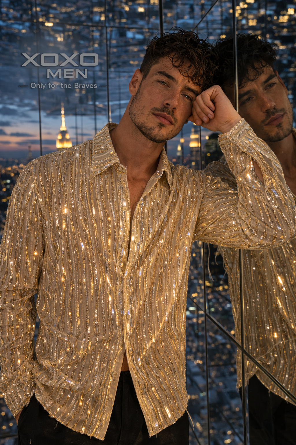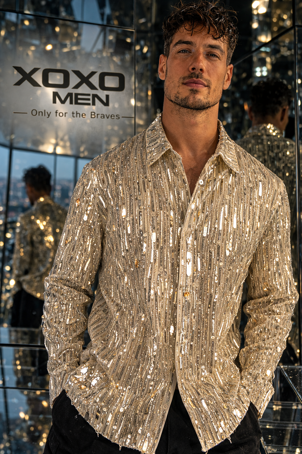 Men's Gold Sequin Fringe Shirt – Men Festival Party Outfit Luxury Men Fashion