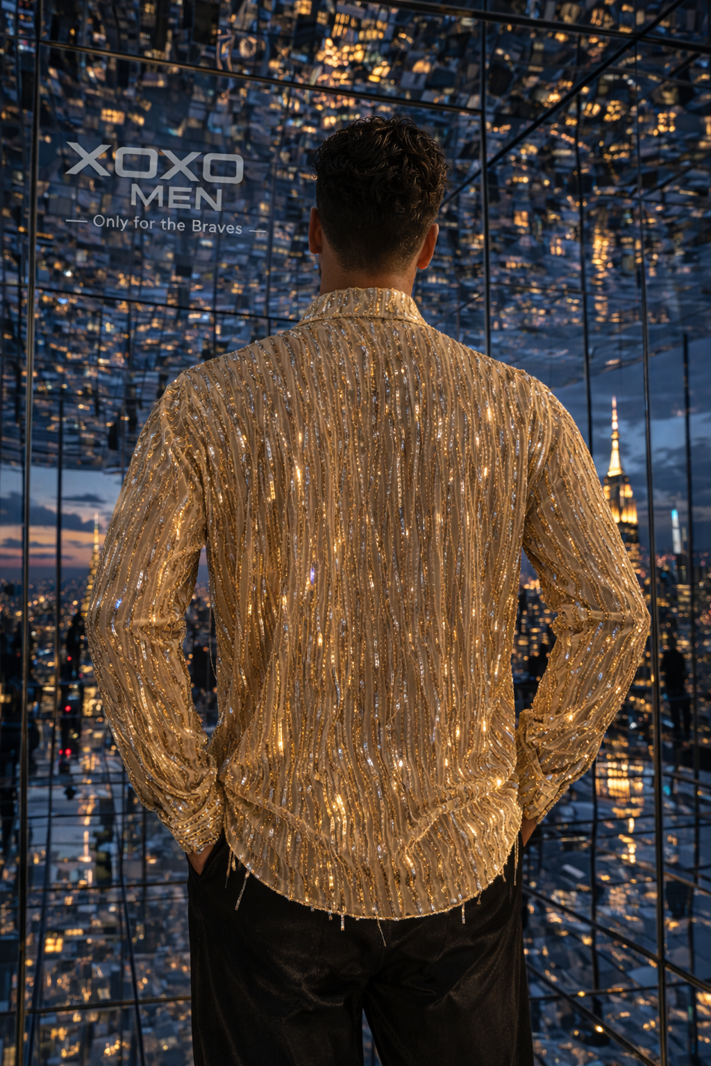 • Gold sequin fringe shirt for men