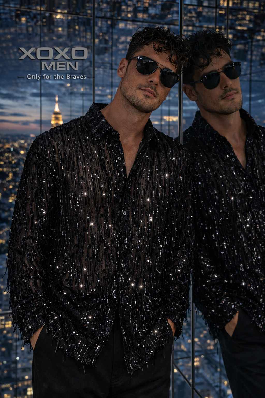 Stand out in this men's gold sequin fringe shirt, designed for bold men's party wear, festival outfits, concert fashion, nightlife looks and stage performances. The shimmering gold sequins and tassel fringe create eye-catching movement, making this shirt perfect for men who want a standout outfit for parties, festivals and special events.
