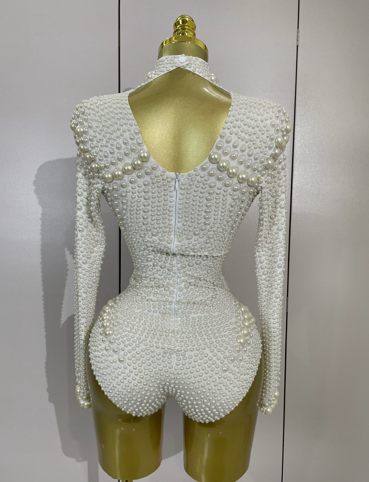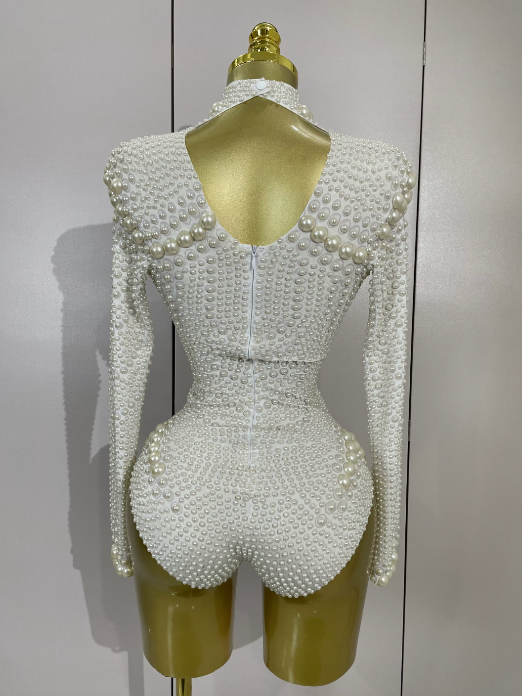 Whether you're celebrating love, stepping on stage, or attending an upscale white event, this pearl embellished bodysuit delivers unforgettable sophistication.