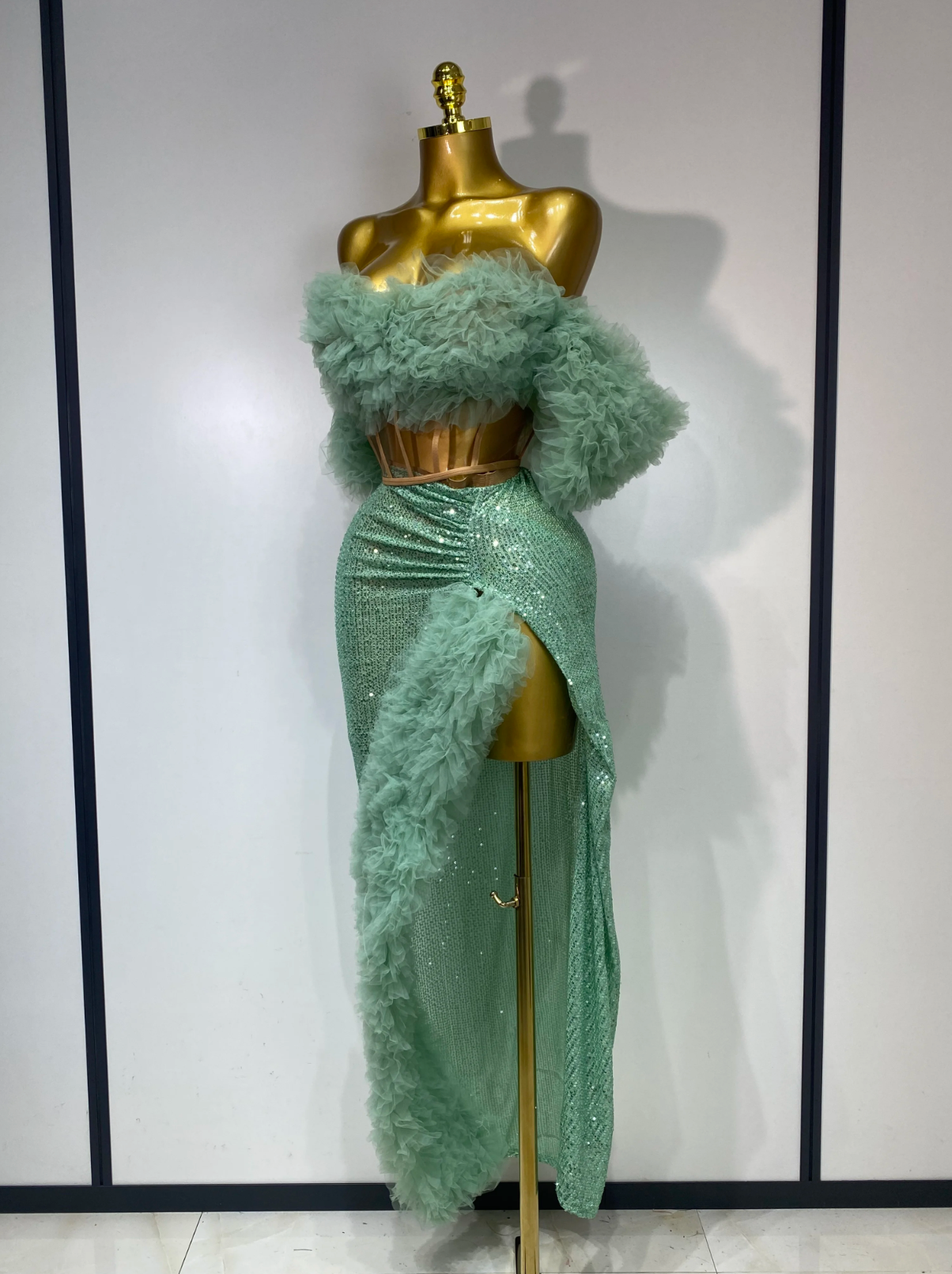 The corset bodice enhances the waist and provides a flattering, feminine shape, while the long skirt adds graceful movement for formal occasions. Perfect for evening events, upscale celebrations, and elegant gatherings, this corset skirt set offers a sophisticated alternative to a traditional gown.