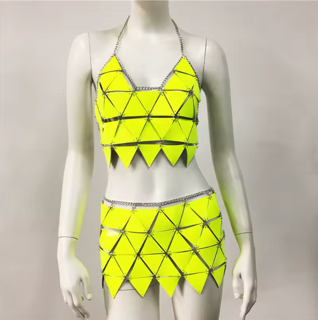 Neon Yellow Body Chain Set Top & Skirt – Festival, Rave, Coachella, Burning Man & Party Outfit for Women