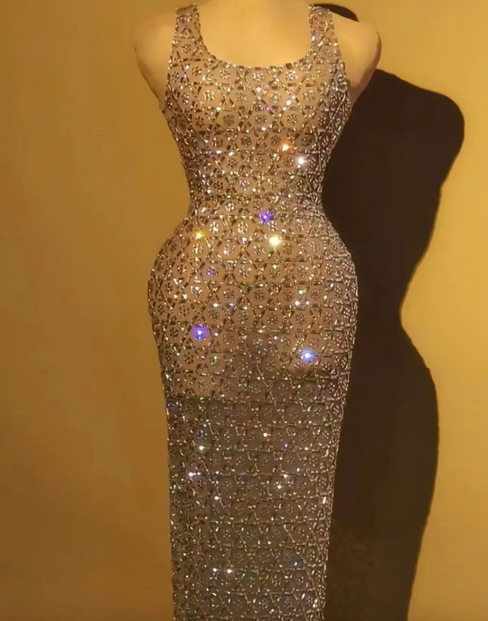 Elegantes Partykleid Abendkleid Maxikleid Funkelndes Kleid Kristall-Show-Outfit