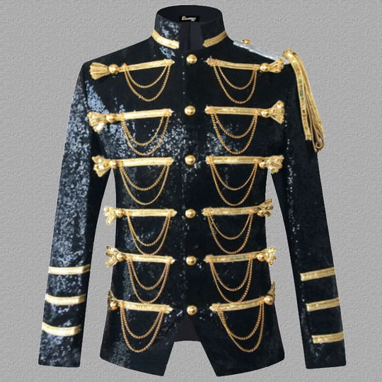 Designer Partyjacke Herren Smoking Blazer Gold Schwarz Burning Man Captain