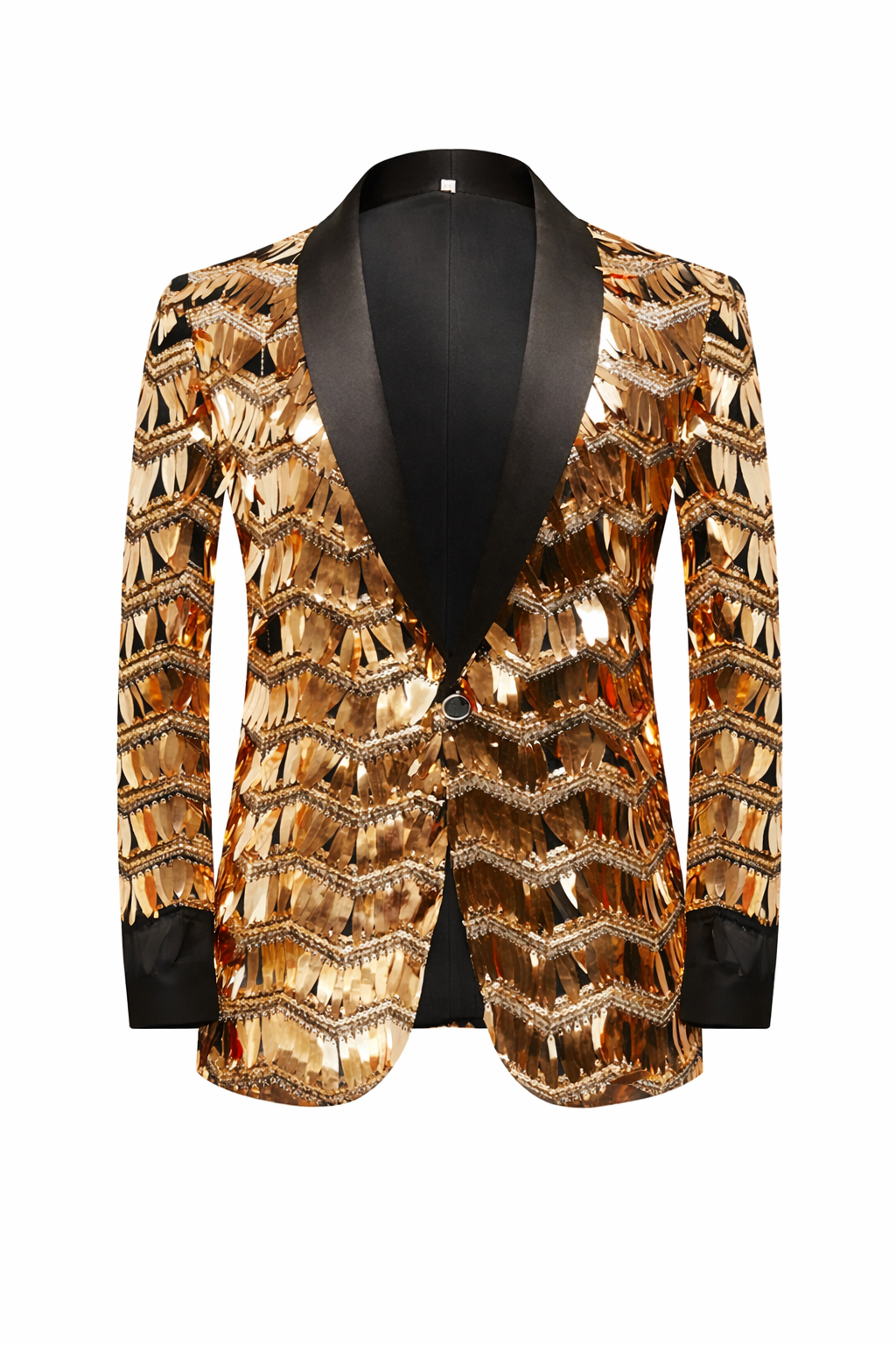 Goldener, glitzernder Blazer mit Spiegelfransen, Party-Outfit für Herren, Smoking-Jacke, entworfen, um Ihre Ausstrahlung zu unterstreichen. Herrenanzug