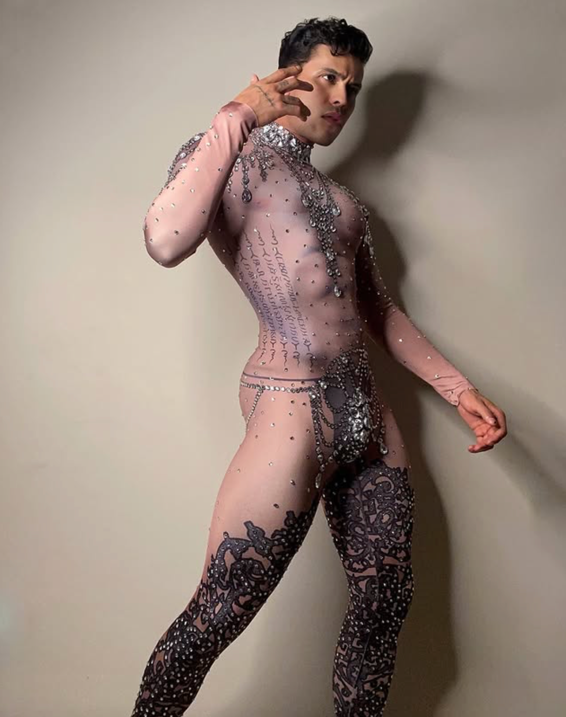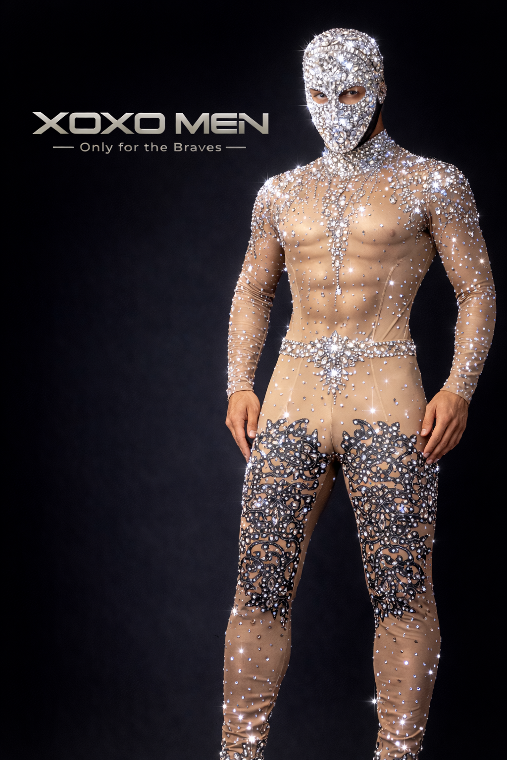 Tanzparty-Outfit Herren-Jumpsuit Strass-Catsuit Tanzperformance Burning Man Kostüm für Herren