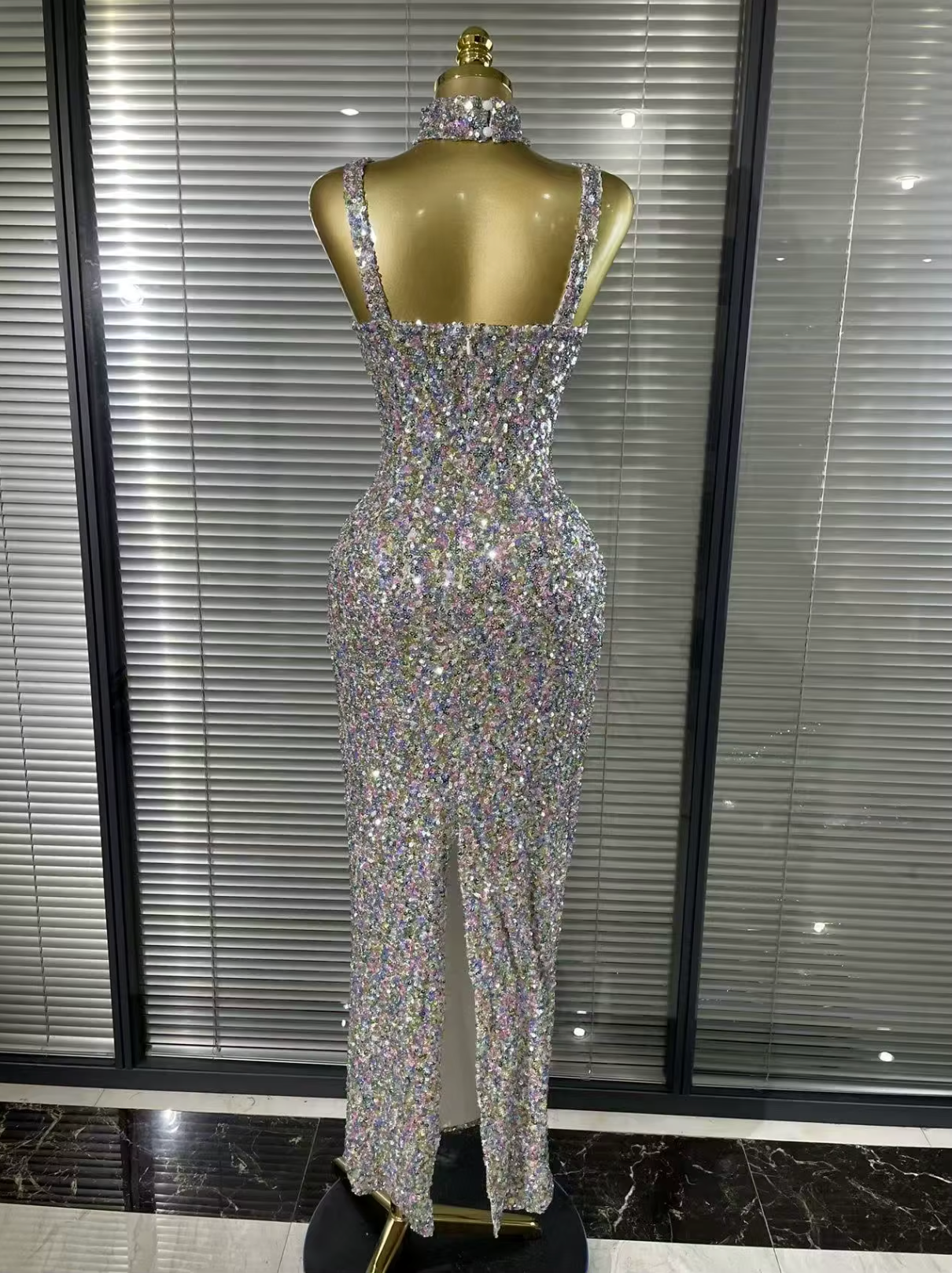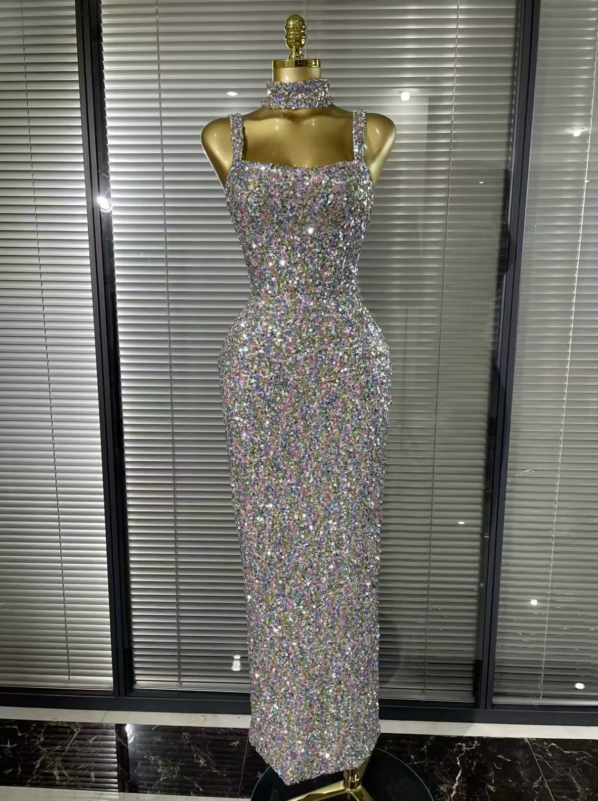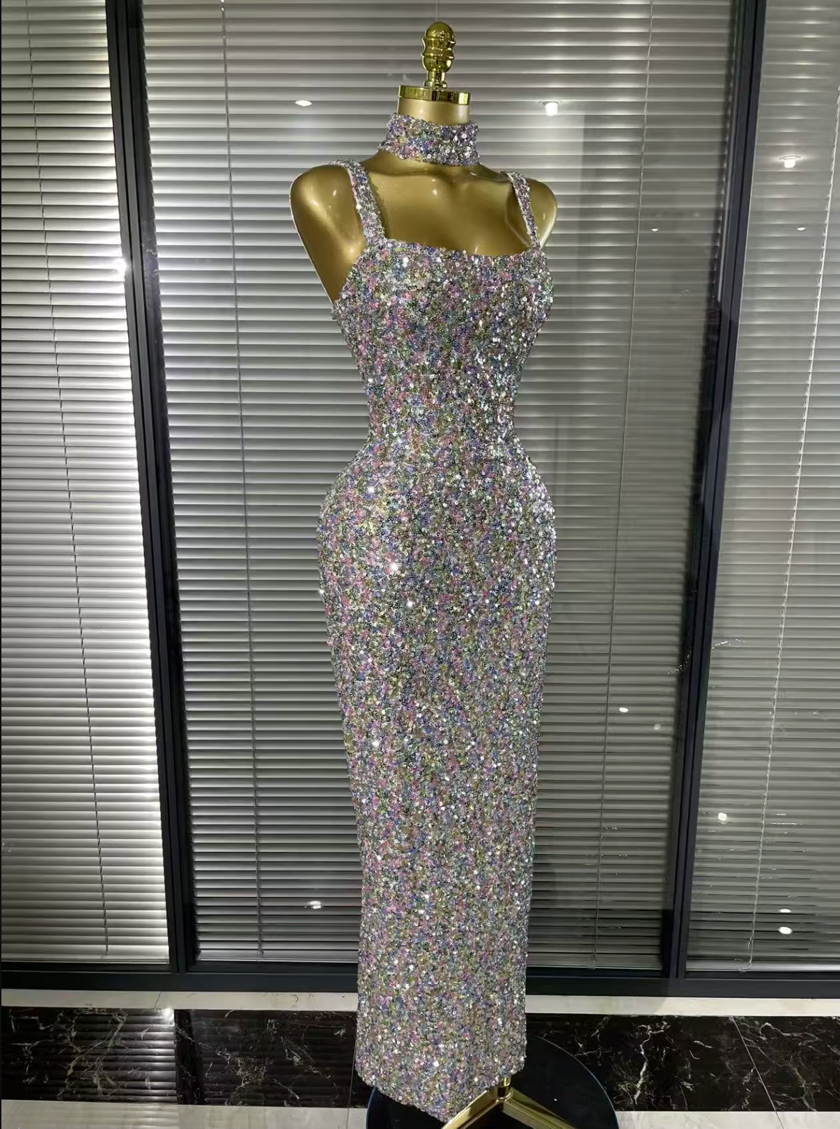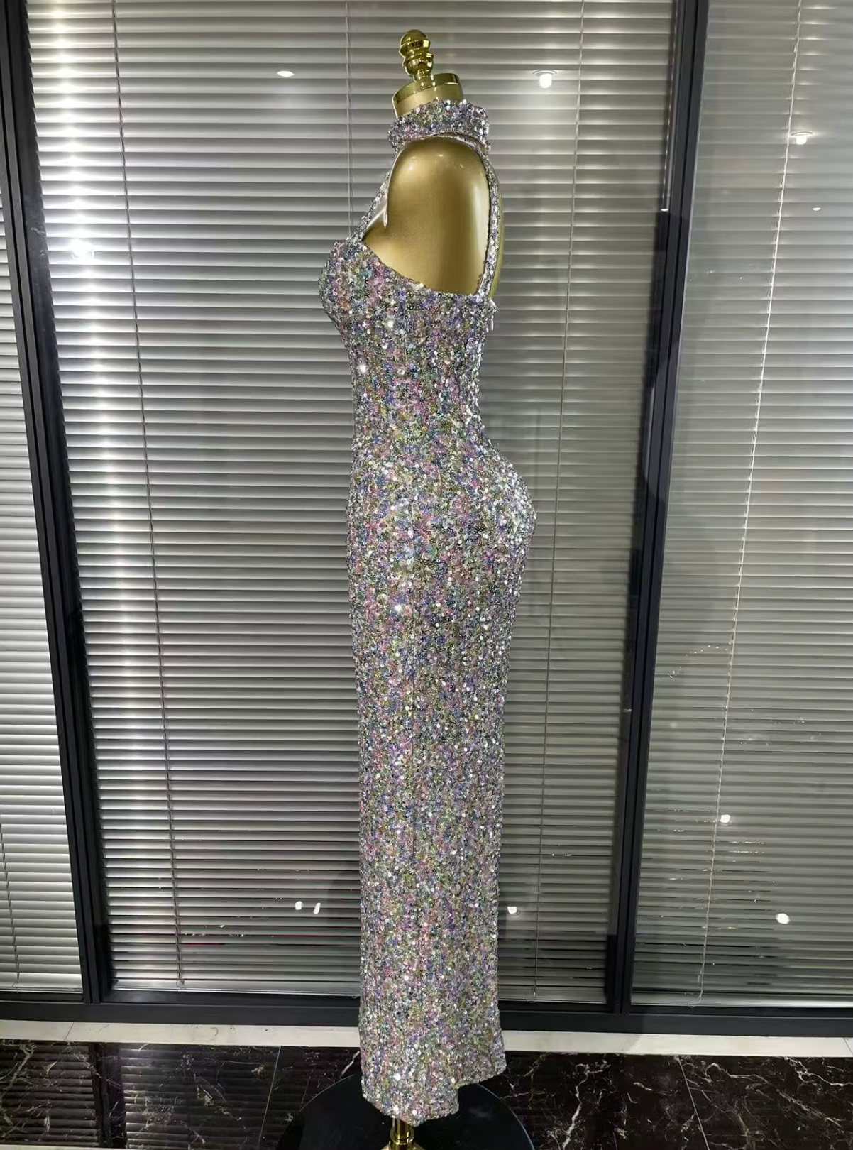 Make a statement in this luxury sparkling silver maxi dress, designed to deliver elegance, shine, and high-impact glamour. Perfect for formal events, evening parties, stage performances, and special occasions, this dress features a radiant silver finish that catches the light from every angle.