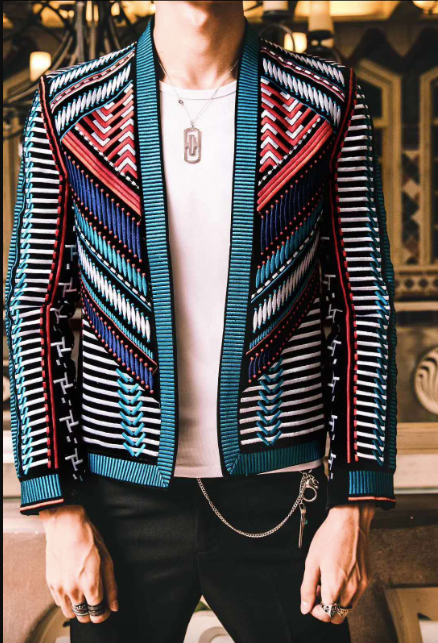 Partyjacke Herren Smoking Blazer Stickerei Tribal Anzug
