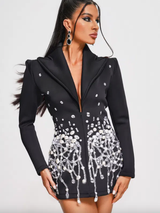 Strass Kleid Geburtstag Party Kleid Kristall Jacke Blazer Leistung Party Kostüm