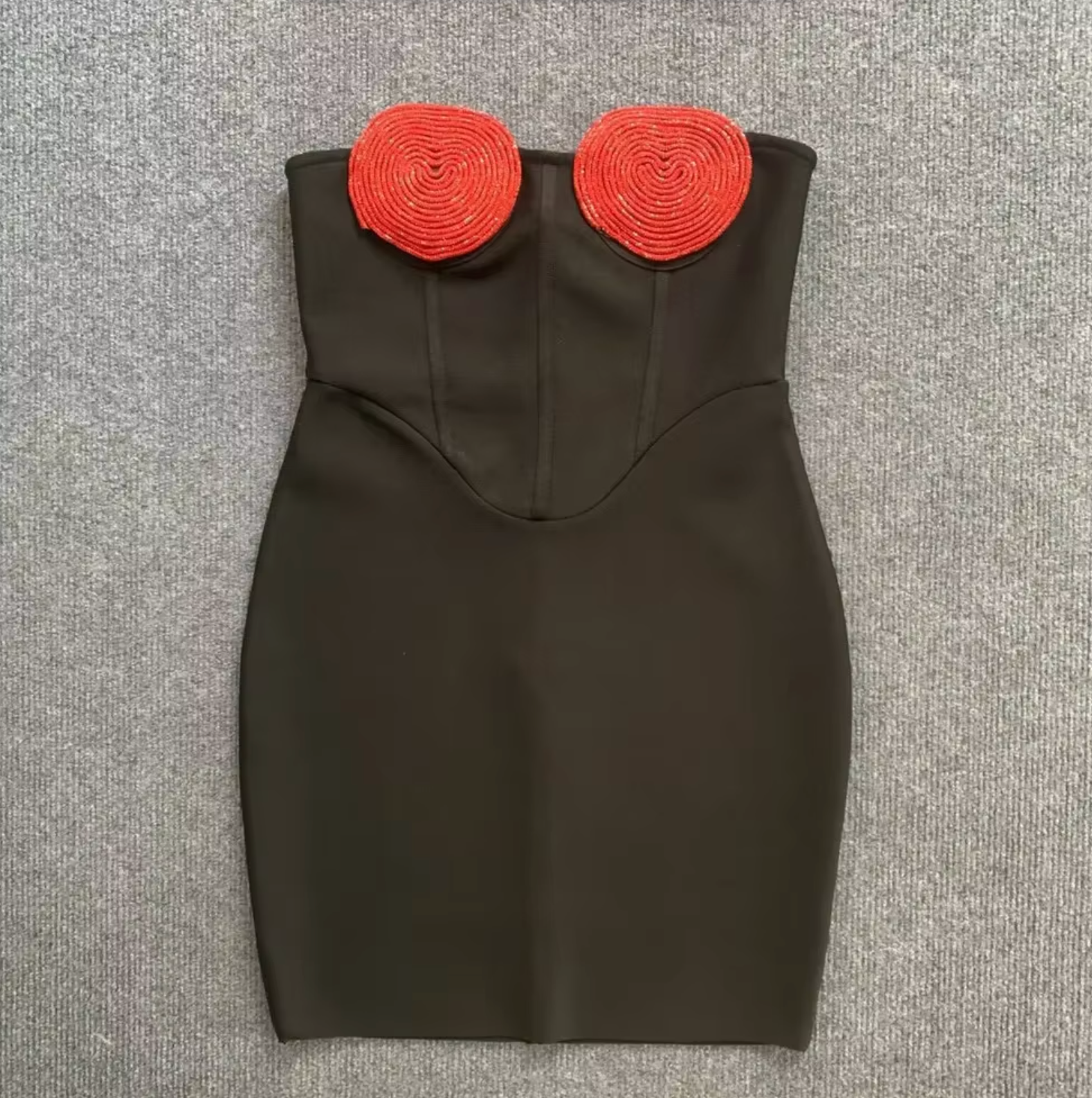 Elegant heart-shaped strapless evening dress with a slimming bodycon fit. Perfect for parties, nights out, and fashionable events.