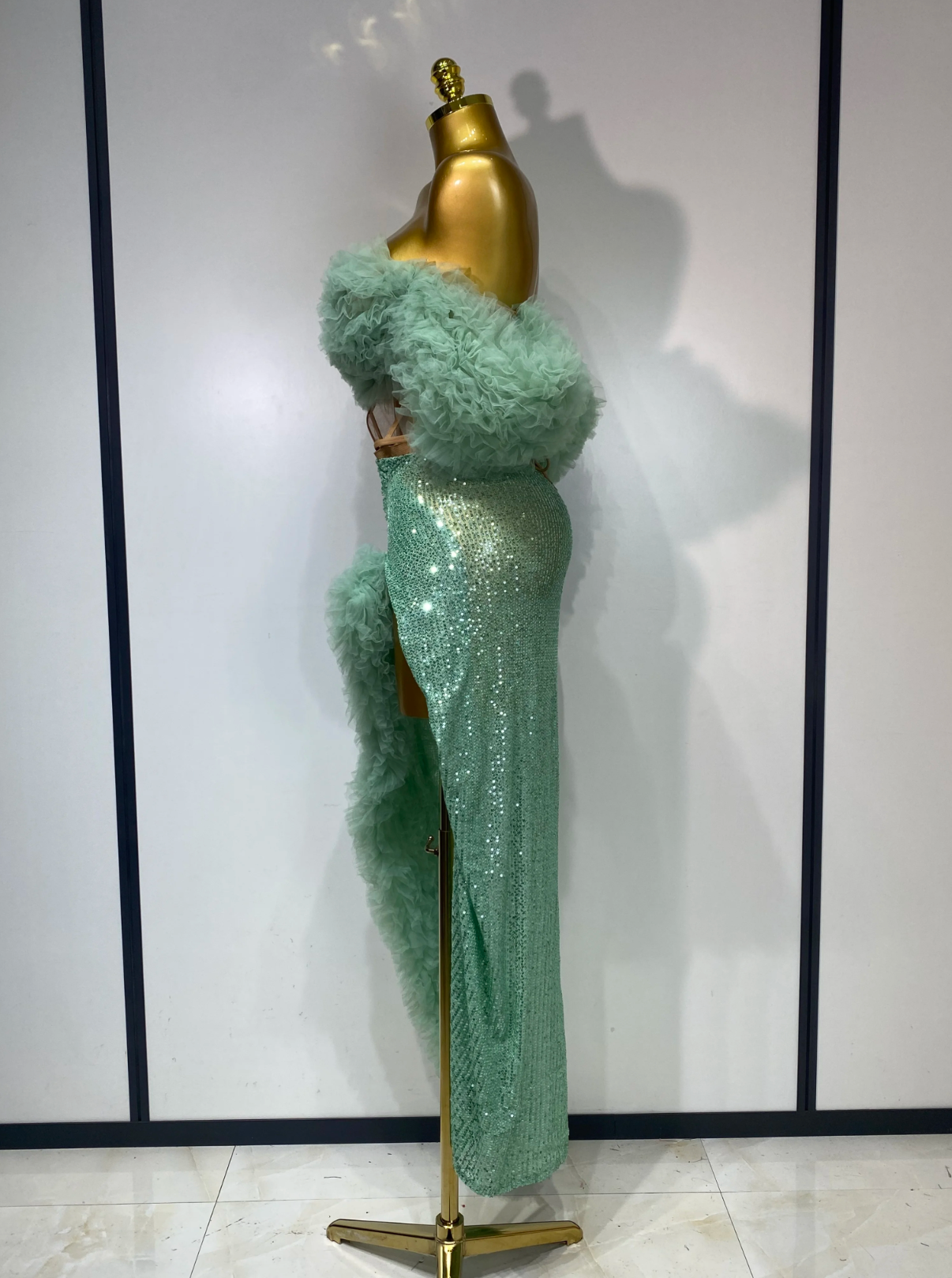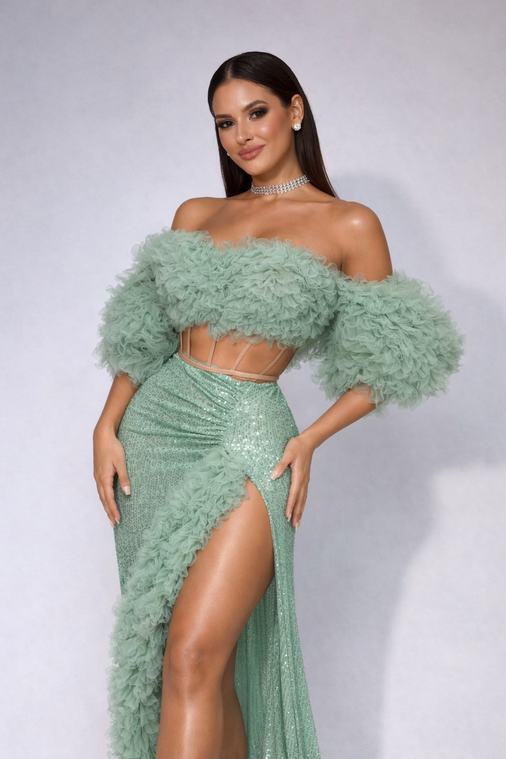 Mint Green Glitter Dress 2-Piece Party Outfit – Maxi Skirt & Top Set