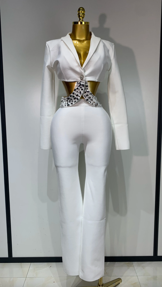 Women Sexy Long Sleeve Sequin Bodysuit Jumpsuit Pants Bandage Celebrity Designer Fashion Women's Luxury Birthday Set All black and All White Party Clothing.