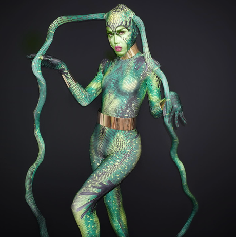 Style with dramatic makeup and boots to complete the extraterrestrial transformation. Inspired celebrities costumes Heidi Klum inspired scary alien costumes.