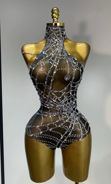 Stand out after dark in this spider diamond mesh bodysuit, designed with a bold see-through mesh fabric and sparkling diamond-style accents for dramatic impact. Perfect for nightclub parties, gogo dancer outfits, Halloween costumes, and stage performances, this statement bodysuit delivers edgy style with a sleek, body-hugging fit.