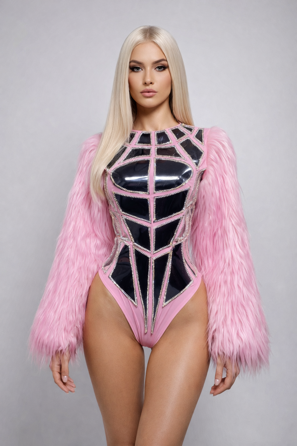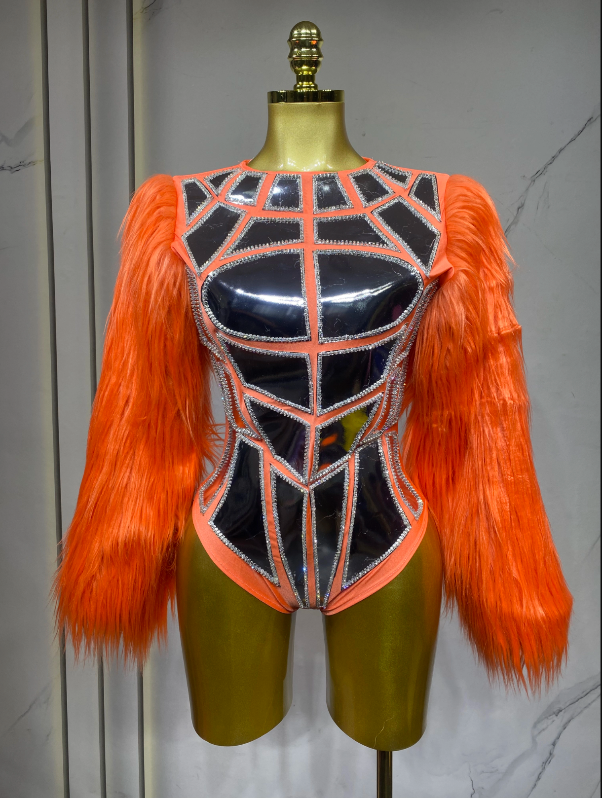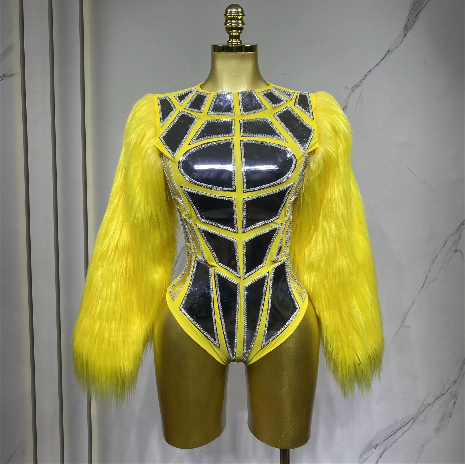 Laser Mirror Neon Fluffy Jumpsuit Bodysuit – Lady Gaga-Inspired Festival Costume