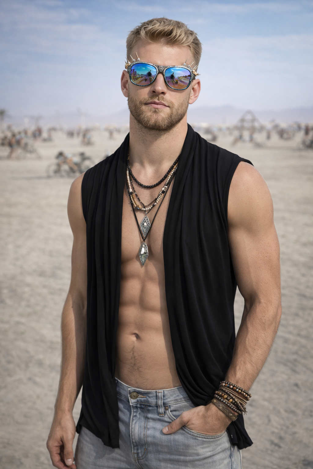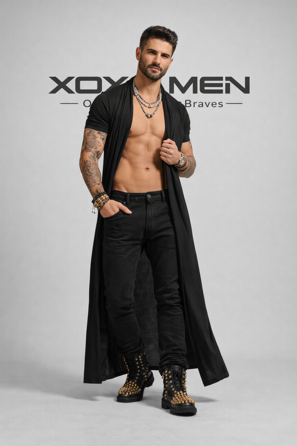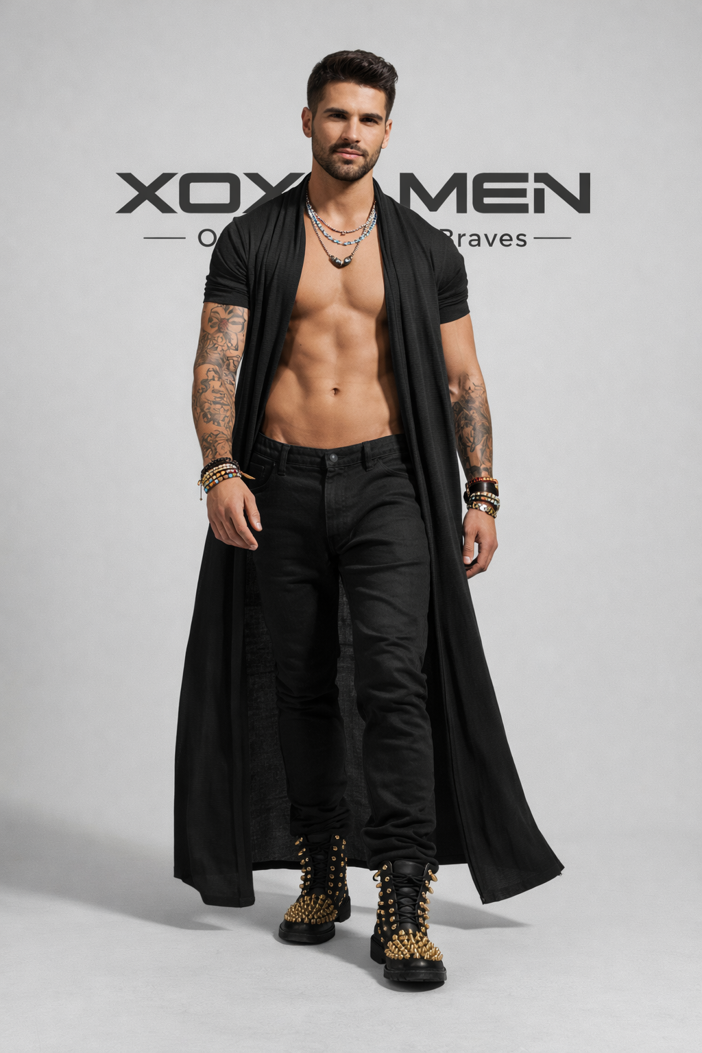 Men's Black Cardigan Festival Party Outfits For Men Boho Hipster Style Unisex Long Blazer Gilet For Men Designed For Burning Man.