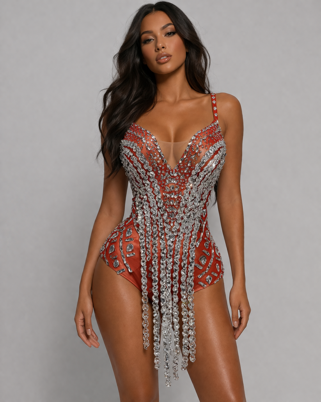 • rhinestone fringe bodysuit women