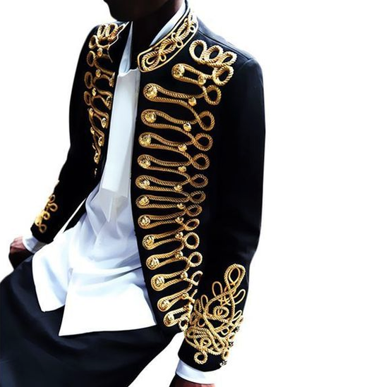Designer Party Outfit Velvet Jacket For Men's Outfit Blazer Gold Black Military Costume