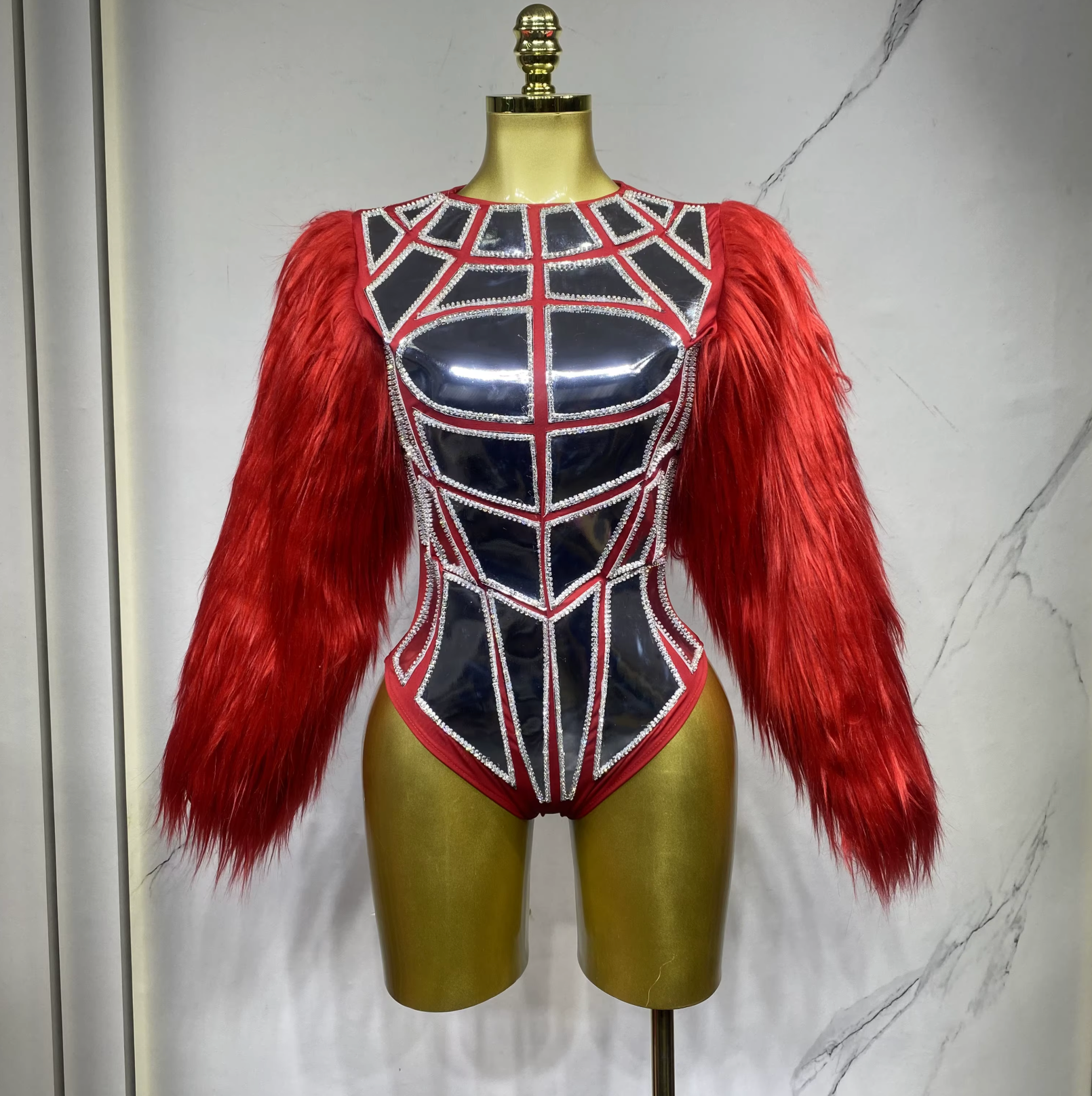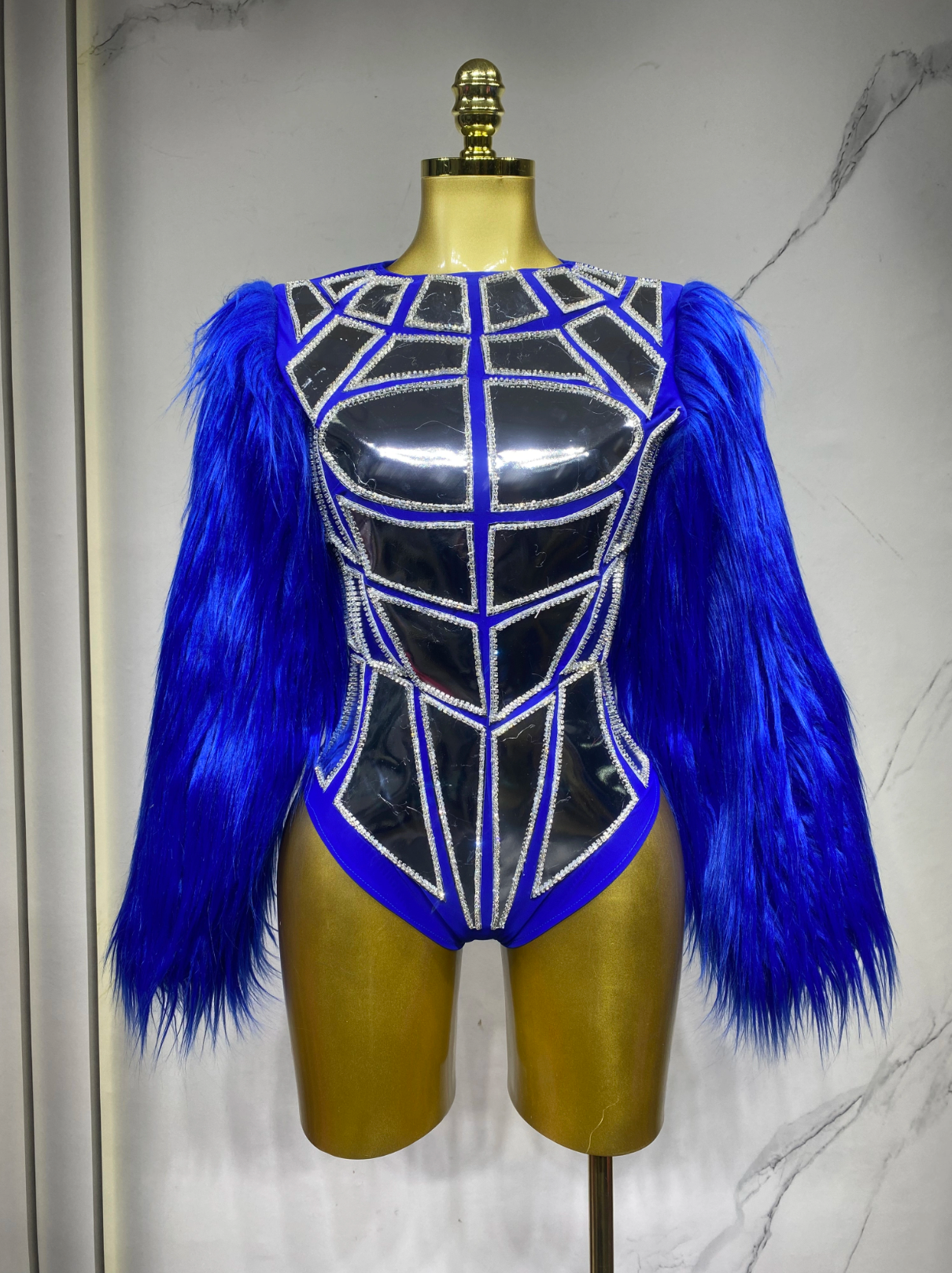 Laser Mirror Neon Fluffy Jumpsuit Bodysuit – Lady Gaga-Inspired Festival Costume