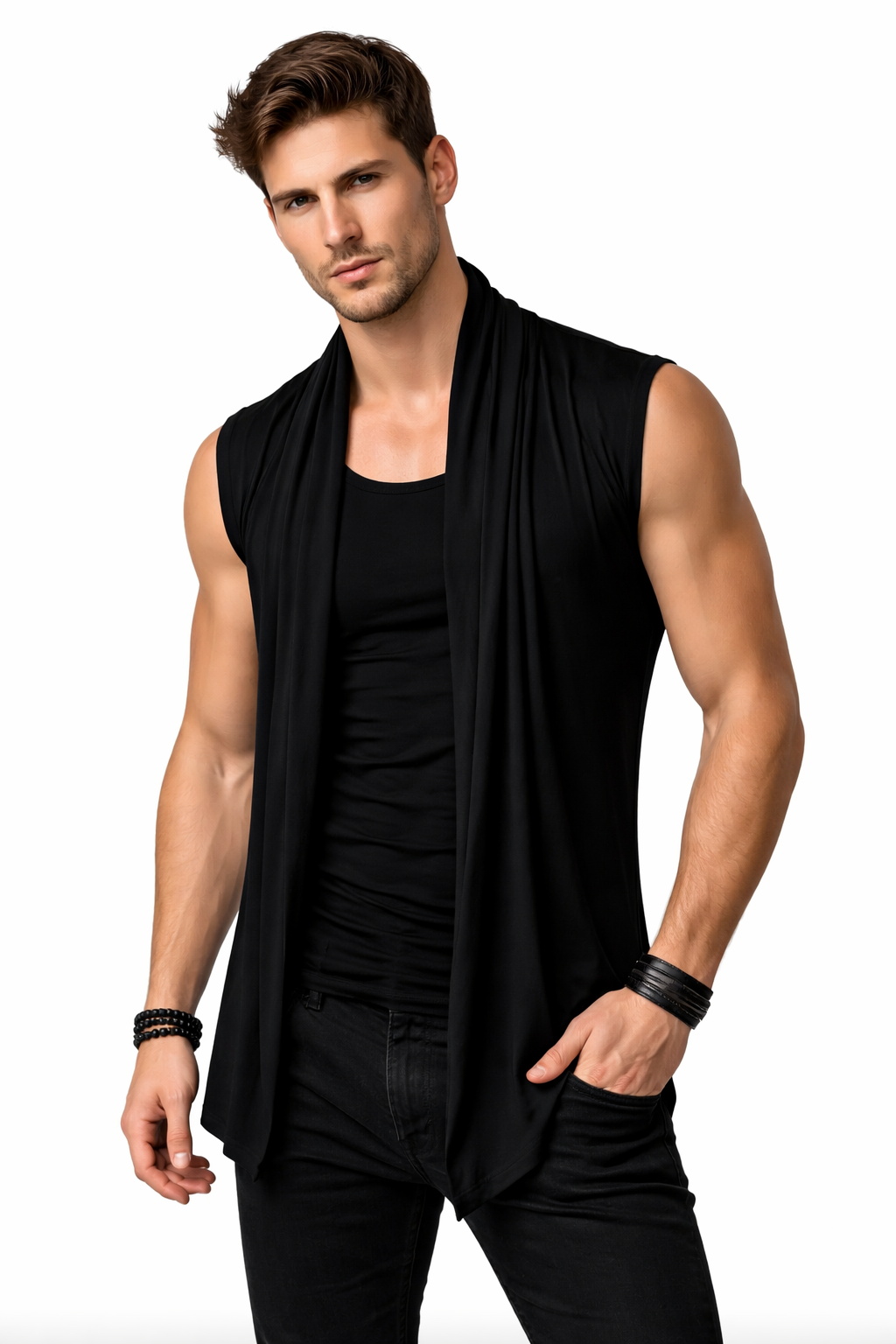 Men’s Gothic Sleeveless Cardigan Black Festival Blazer – Men's Burning Man, Concert, Party & Halloween Outfit