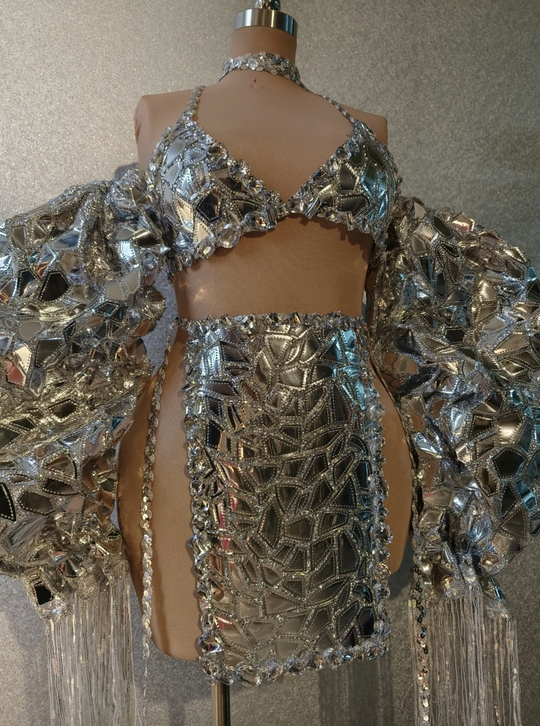 Dress Outfit Holographic Top Skirt Top Set body chain Skirt Costume Nightclub Dress