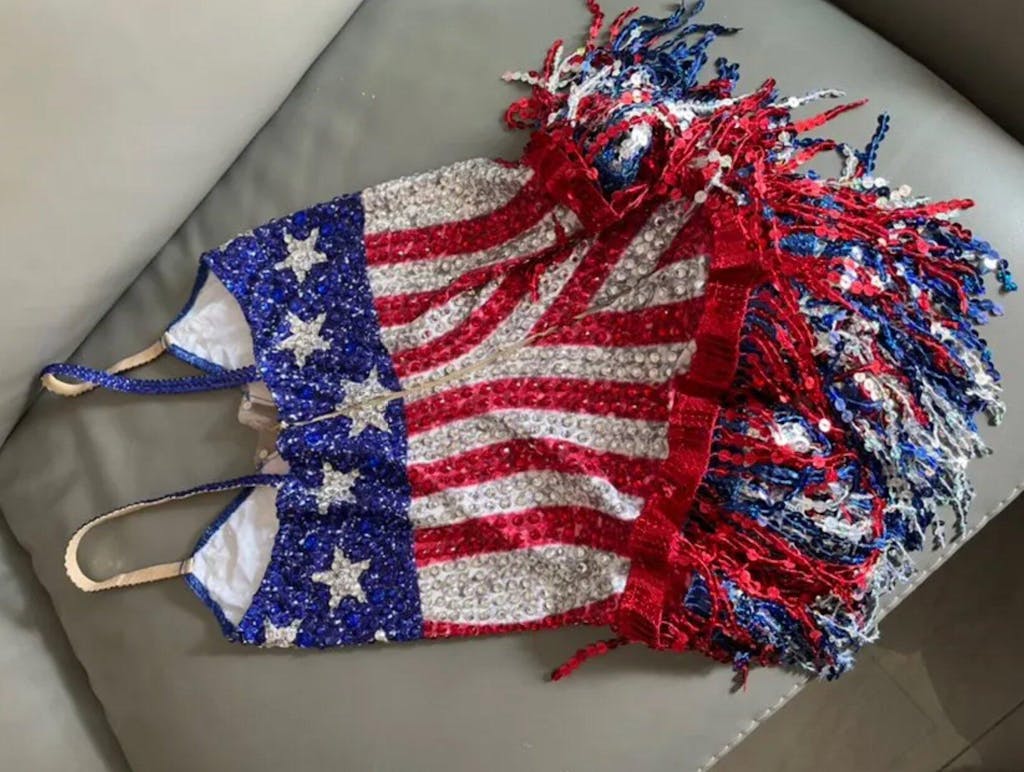 USA Flag Dress Sequin Fringe Cowgirl Jumpsuit – Patriotic Festival Dance Costume