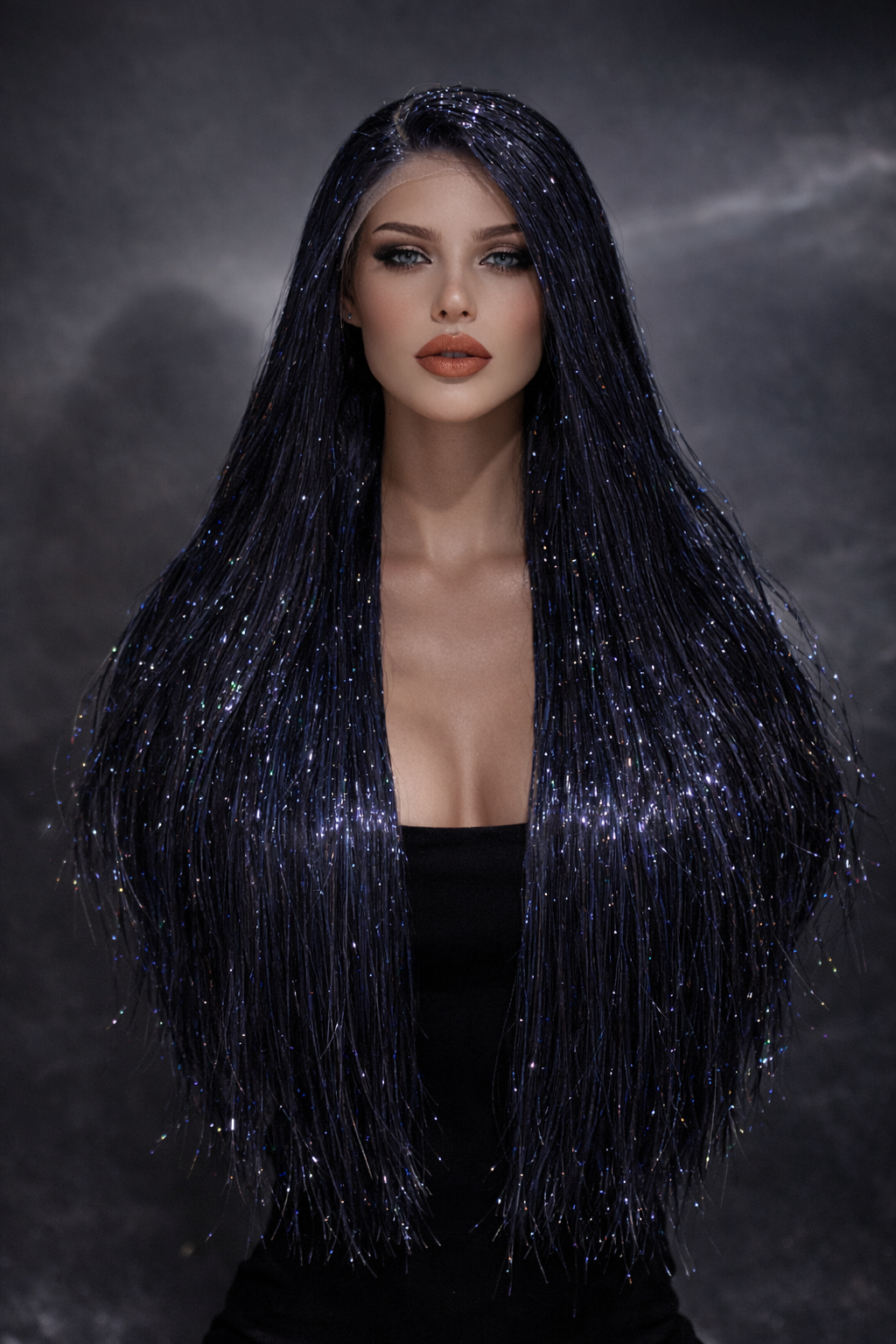 Command attention with this stunning full gold tinsel wig lace front, designed for high-impact performances, Carnaval celebrations, music festivals, and show-stopping events. Featuring shimmering metallic strands and a realistic lace front hairline, this synthetic performance headpiece delivers dramatic sparkle under stage lights.