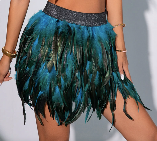 Feathers Top & Skirt Party X Rave Festival Outfit Festival Outfit