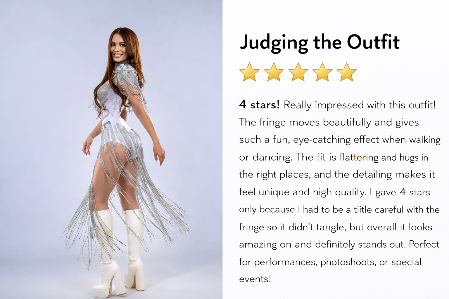 Yes. The rhinestones and fringe tassels create dramatic shine and movement, making it perfect for singers, performers, and stage shows.