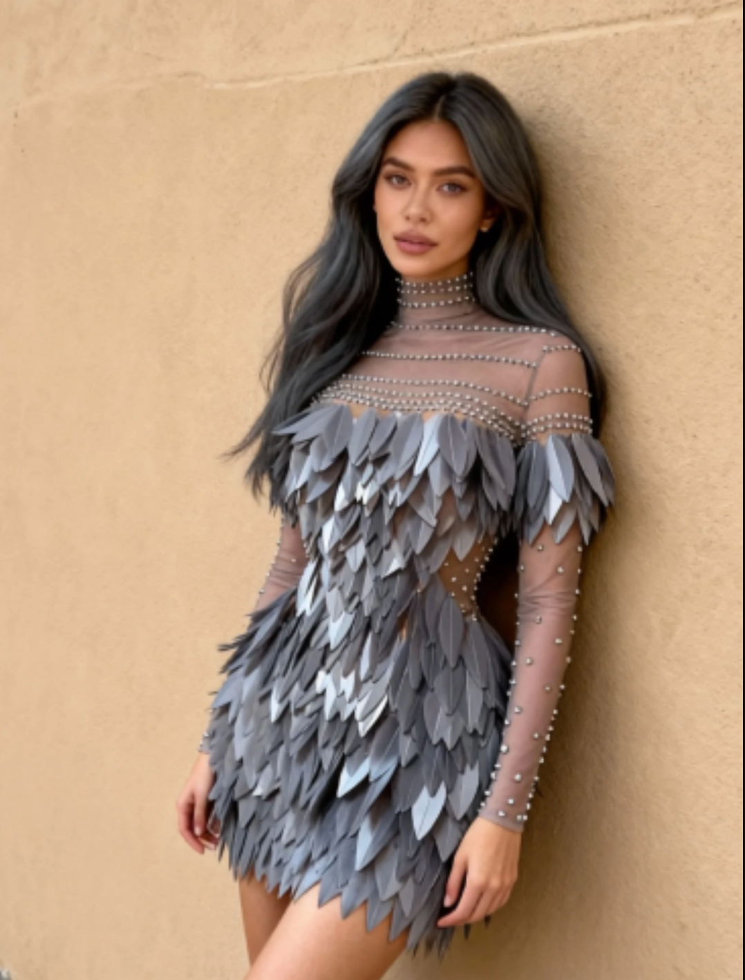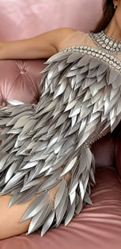 Shop sexy 3D leaf rhinestone mini dresses for clubwear, stage shows, drag performances, festivals, and runway fashion.