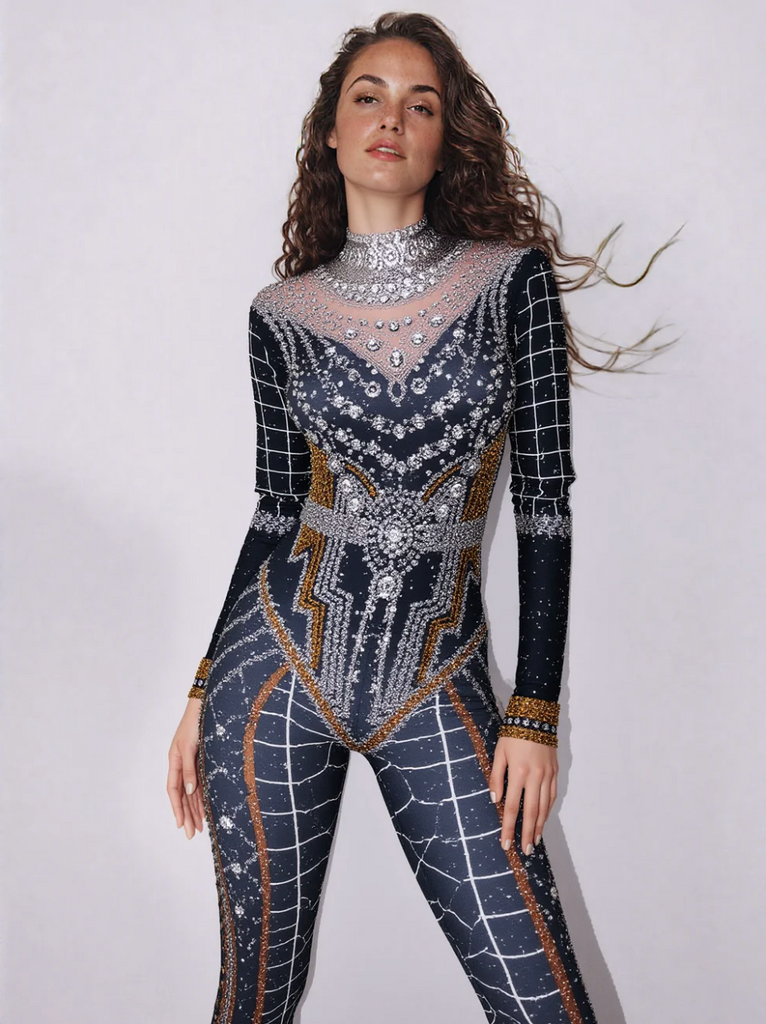 Rhinestone Jumpsuit Bodysuit Luxury Black Bodysuit Performance Outfit NEW IN