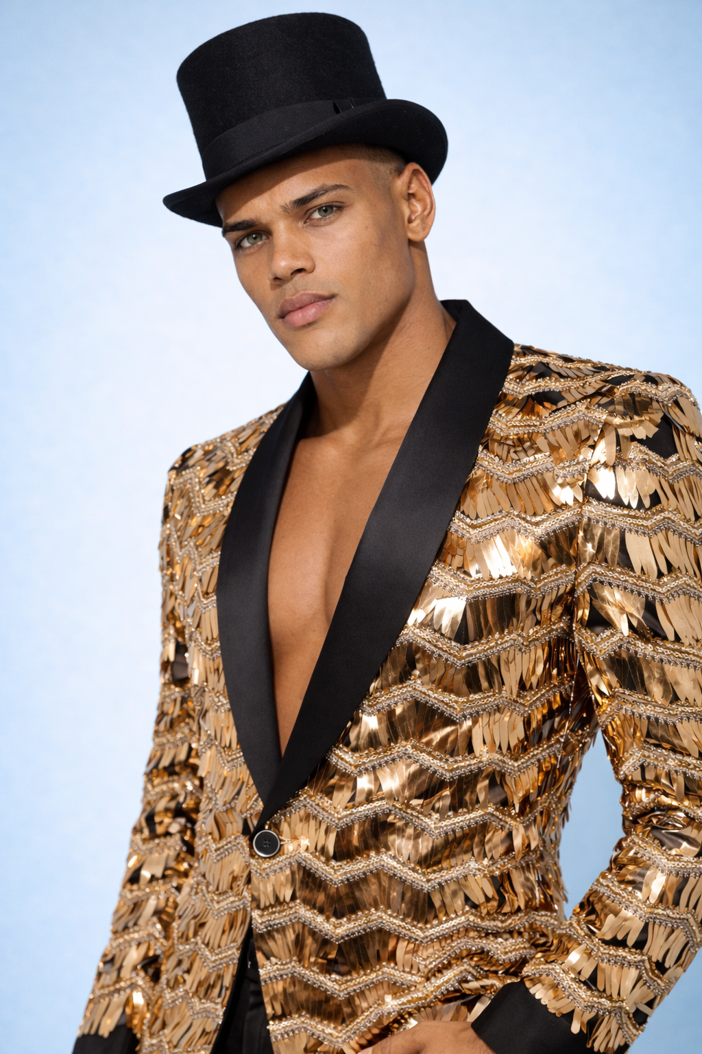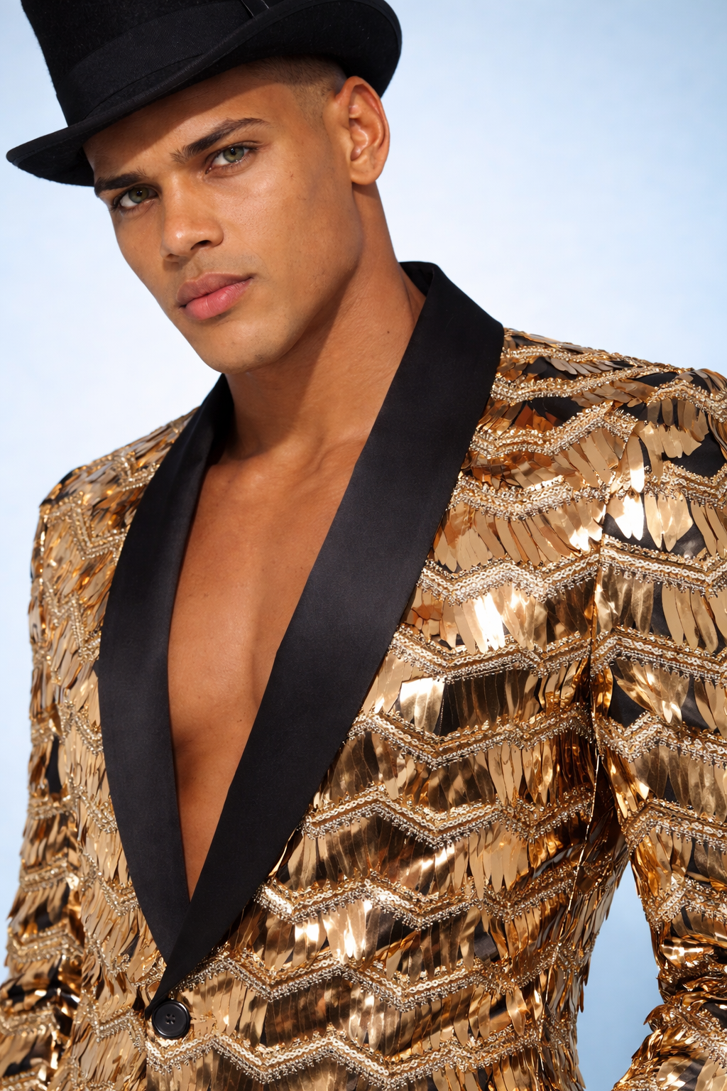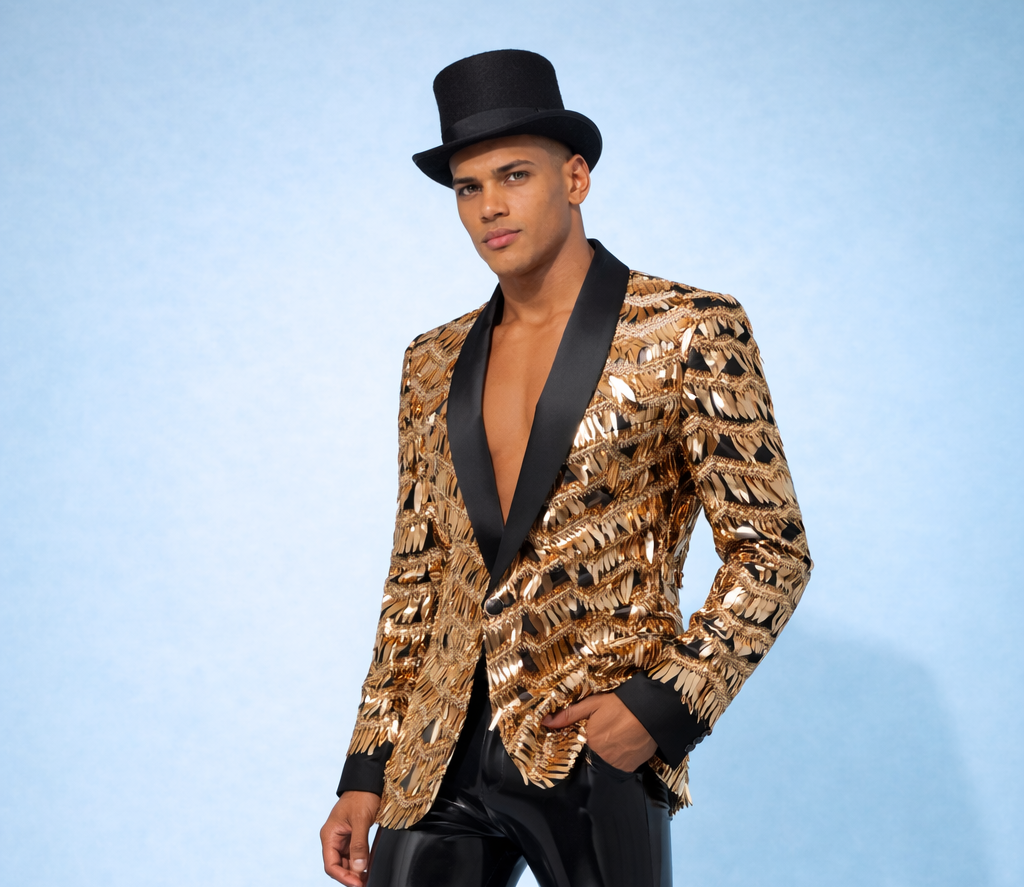 Blazer dorado brillante con flecos espejados, traje de fiesta para hombre, chaqueta, esmoquin, diseñado para realzar tu atractivo. Atuendo de hombre