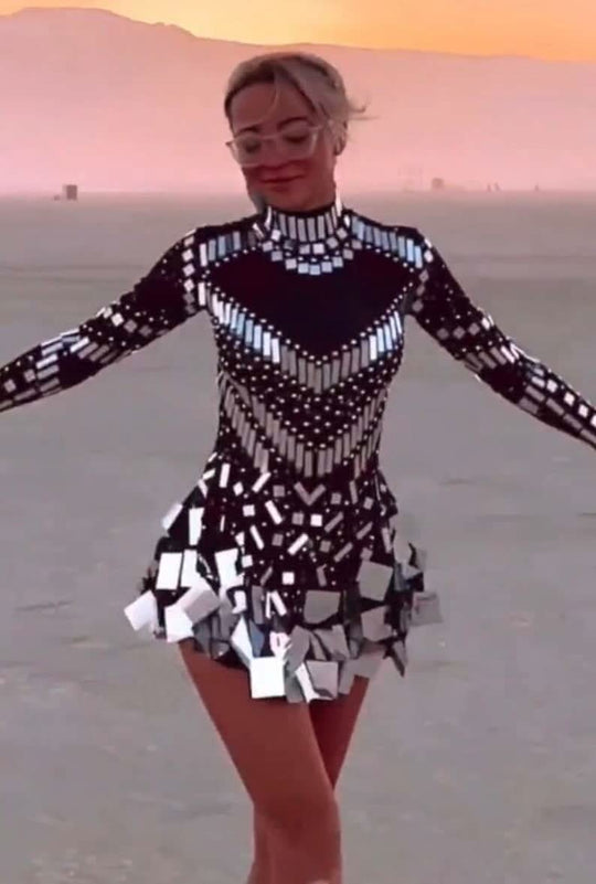 Vestido Espejo Negro Brillante Mini Vestido Body