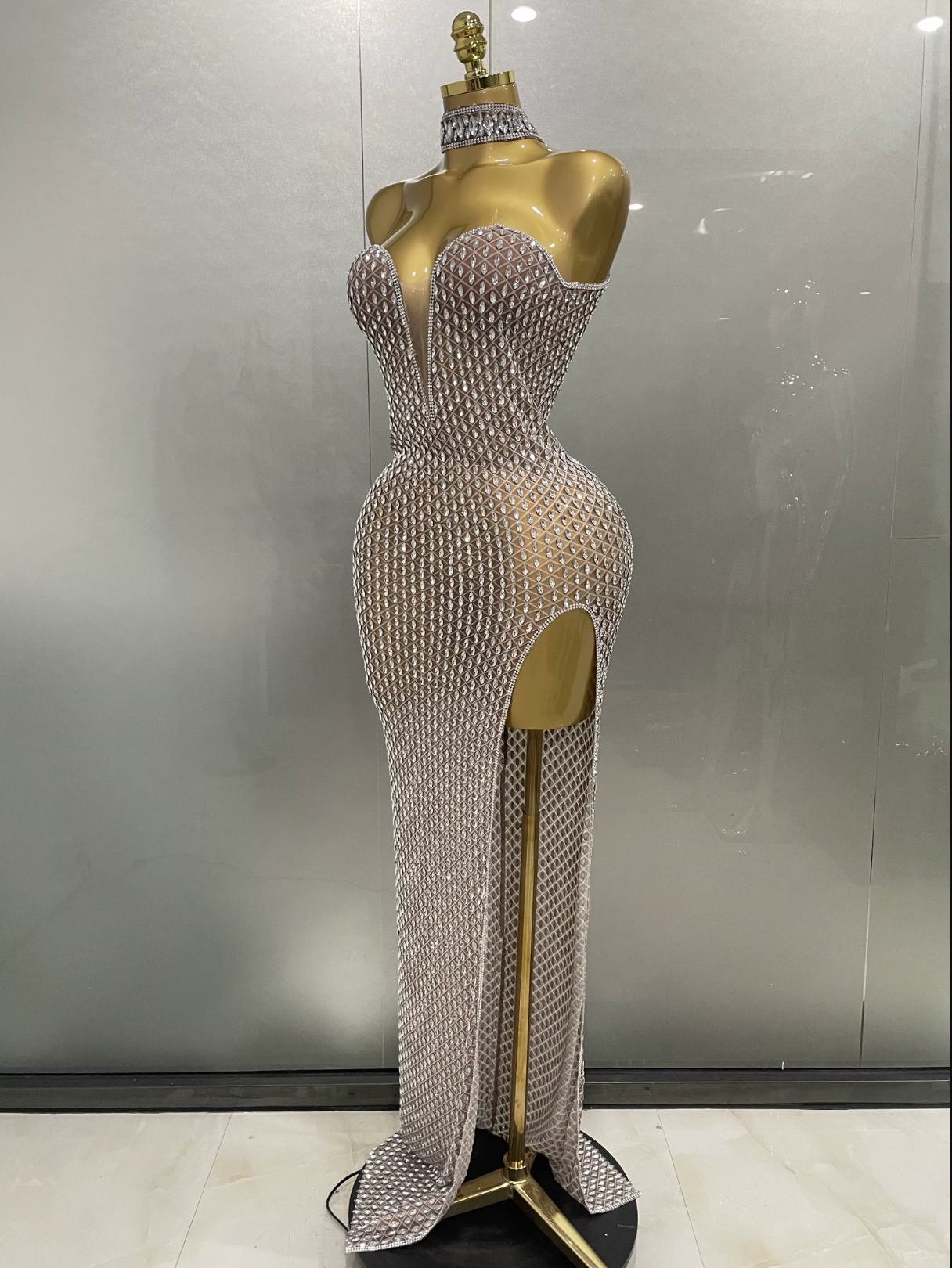 Parfait pour Galas de gala, remises de prix, soirées chics, dîners formels, anniversaires de luxe et événements mondains haut de gammeCette robe longue ornée de bijoux allie sophistication et présence. Le ras-de-cou souligne avec élégance le décolleté, tandis que sa longueur fluide crée une allure à la fois puissante et élégante sous les projecteurs et devant les caméras.