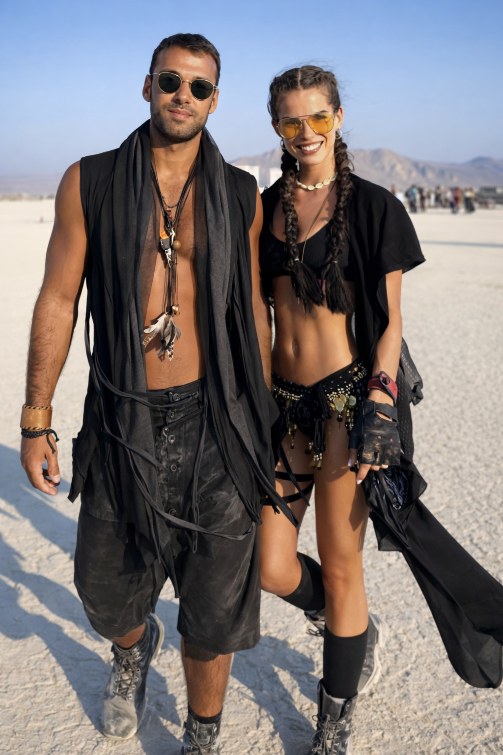 Gilet long unisexe noir pour homme, style bohème hipster, idéal pour les festivals et les fêtes, conçu pour Burning Man.