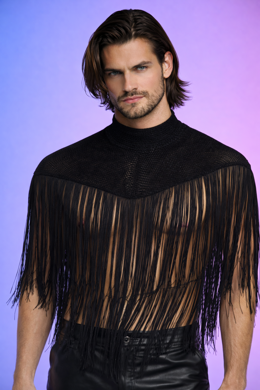 Conçu pour une expression audacieuse et une liberté de mouvement totale, ce poncho patchwork pour homme, orné de franges à pompons, est une pièce forte idéale pour les festivals et les événements dynamiques. Son patchwork superposé apporte texture et profondeur, tandis que les franges fluides dynamisent le mouvement, s'animant sur la piste de danse et sous le soleil du désert.