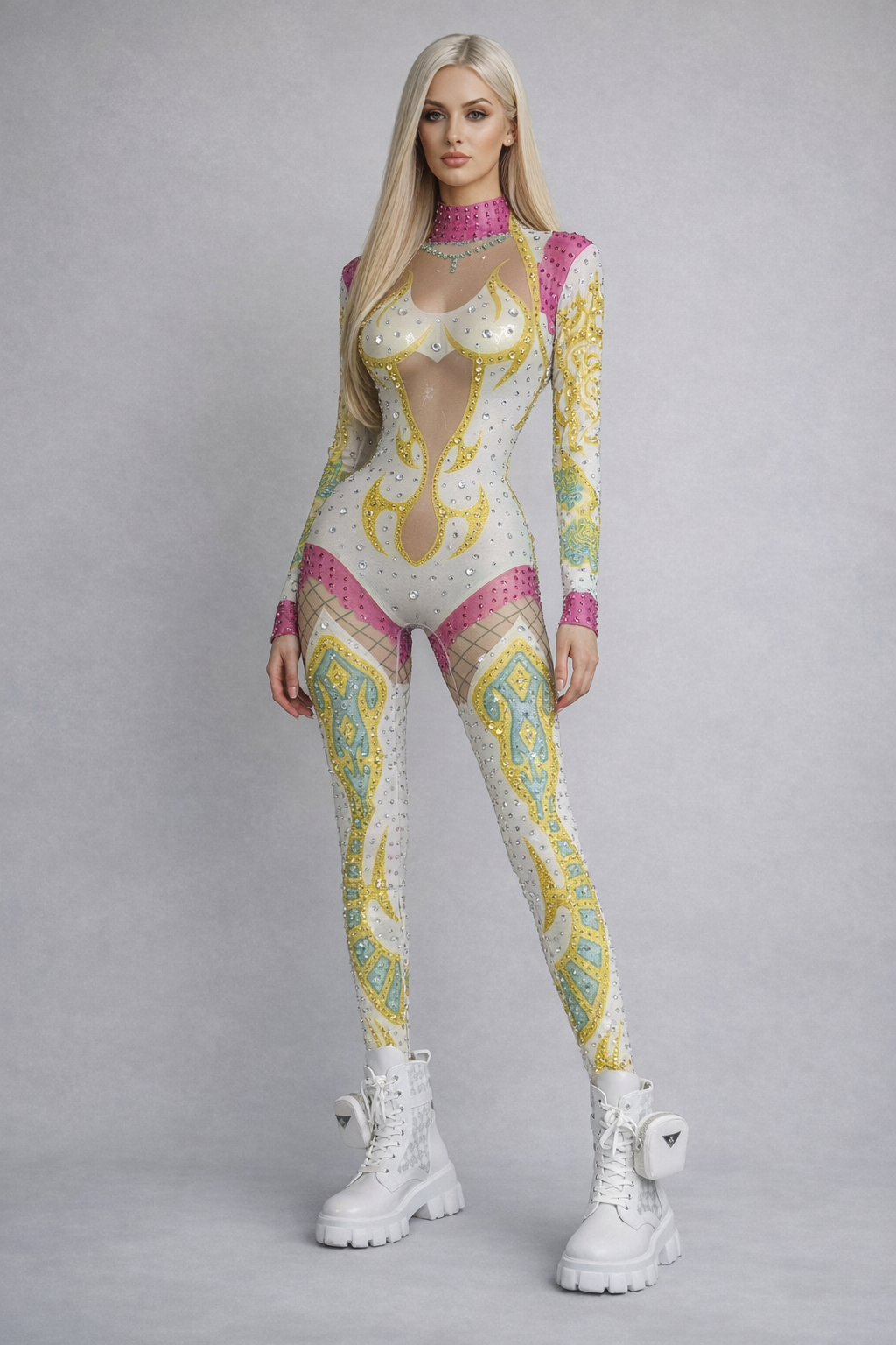 Découvrez cette combinaison festive et colorée, idéale pour les fêtes, festivals, événements western et spectacles. Couleurs vives, coupe extensible et style unique.