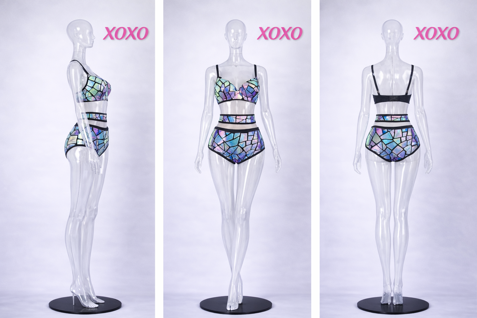 Ensemble 3 pièces Mirror Crystal Festival – Tenue rave faite main