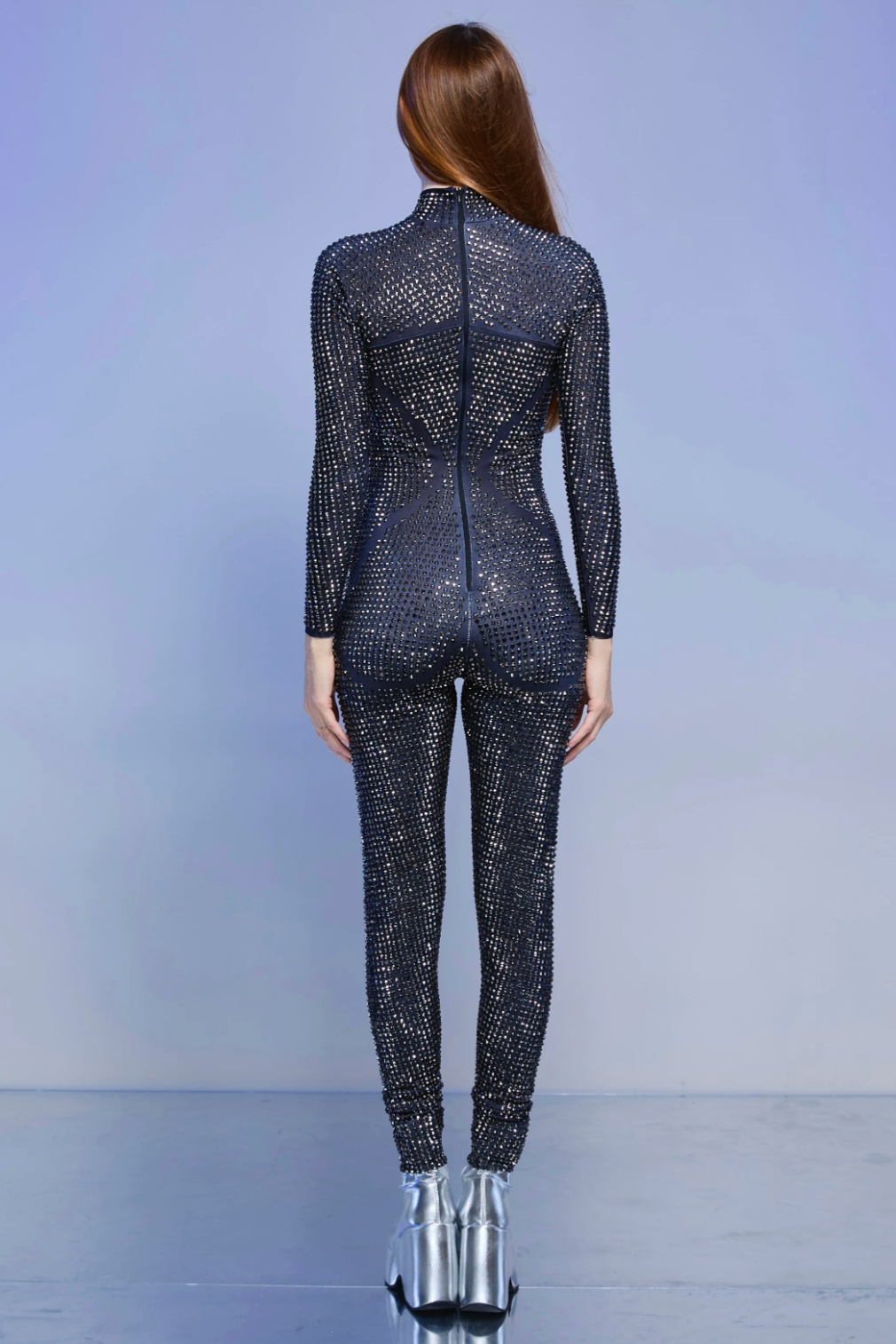 Combinaison à paillettes noires étincelantes – Catsuit de fête élégant