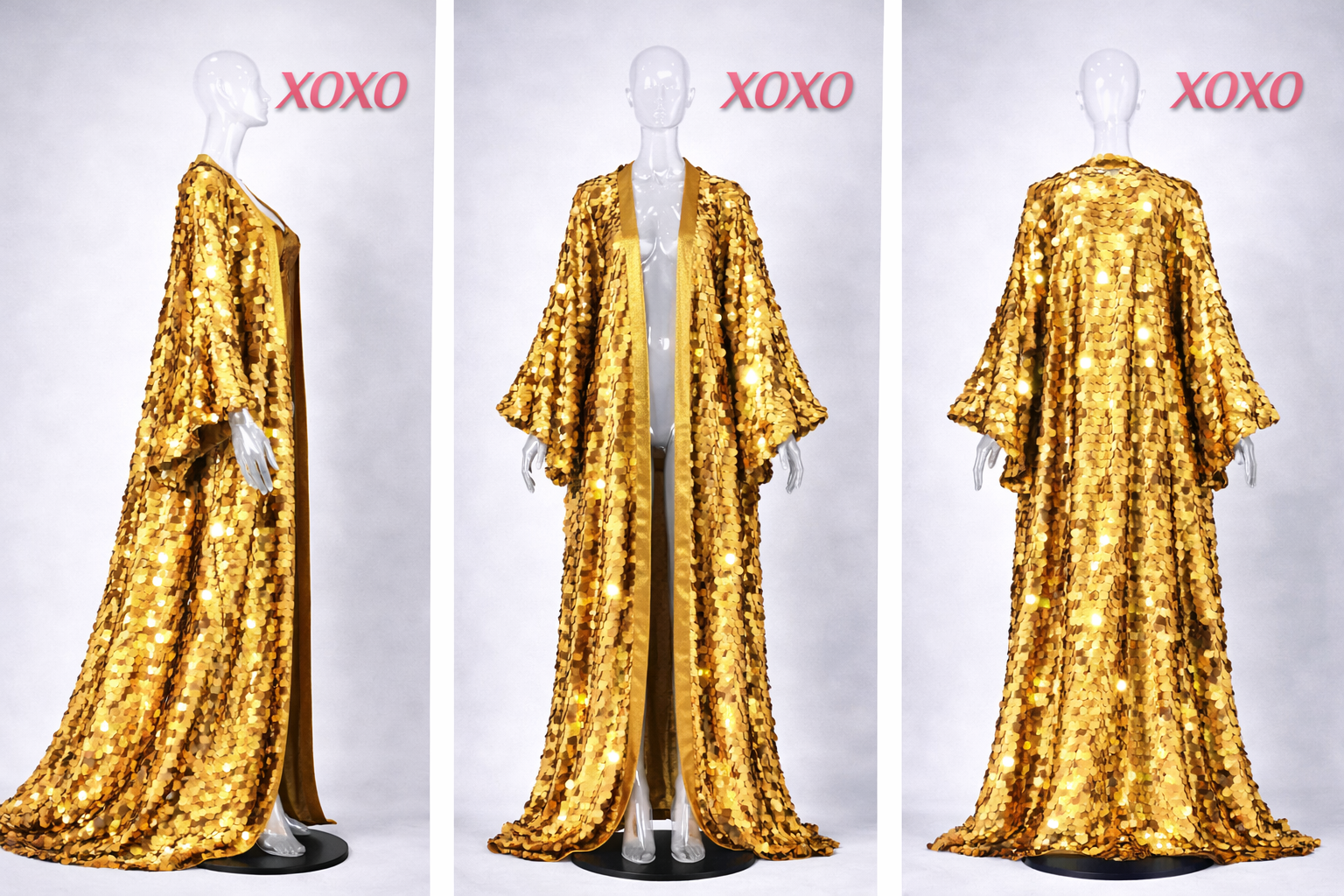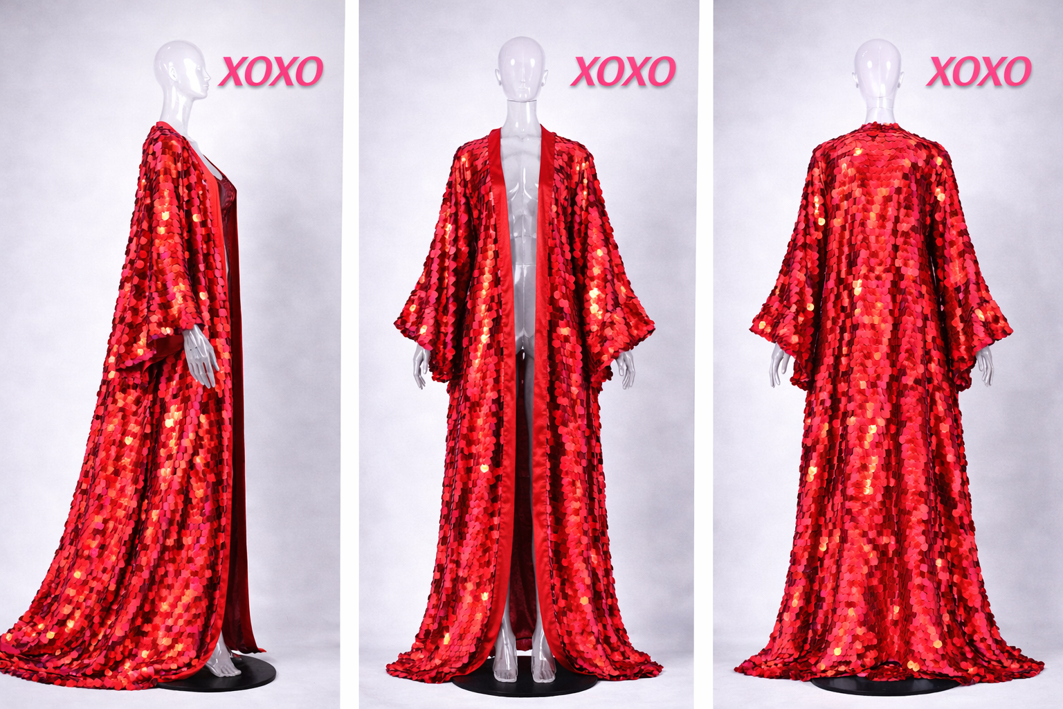 Conçu pour le mouvement, l'éclat et un style festivalier sophistiqué, ce kimono long BVALLEYXOXO, confectionné à la main en sequins holographiques, présente un effet hypnotisant d'écailles de sirène qui reflète la lumière à chaque pas. Sa silhouette fluide crée un mouvement spectaculaire, tandis que sa finition irisée offre un éclat intense sous la lumière du jour, au coucher du soleil et sous les projecteurs de scène.