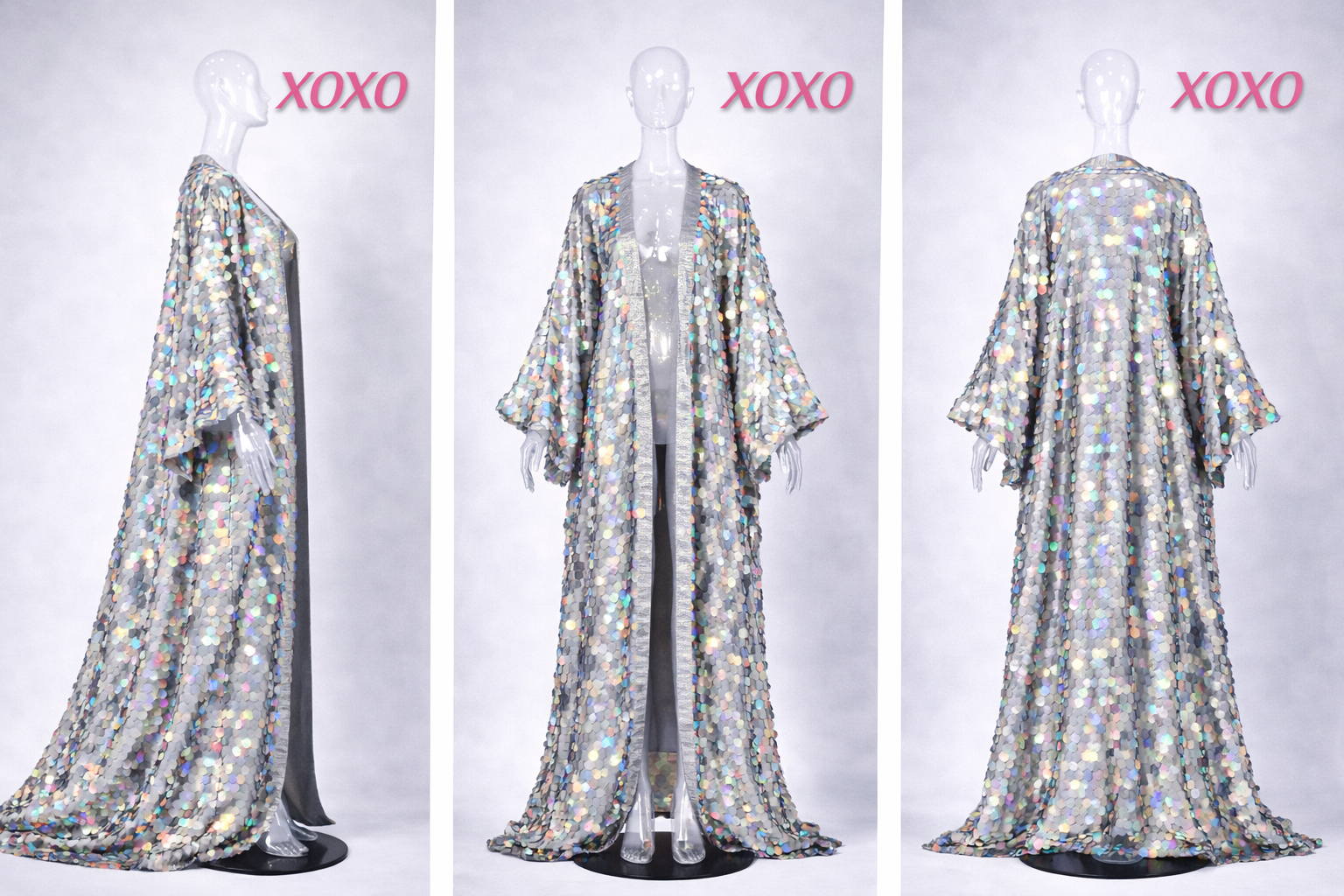 Ce long kimono holographique à écailles de sirène est conçu pour se démarquer sous la lumière du soleil, les projecteurs de scène et lors de séances photo nocturnes. Sa finition à sequins réfléchissants en fait l'une des pièces les plus recherchées pour les festivals comme Coachella, Burning Man et les raves.