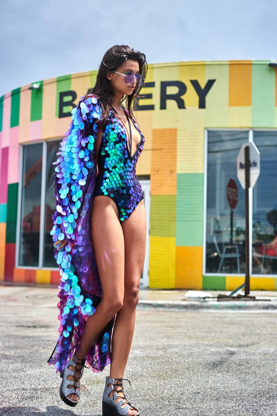 Superposez-le à un body, un bikini ou un ensemble deux pièces pour un look festivalier réussi. Portez-le avec des bottes pour les événements dans le désert ou des plateformes pour vos sorties nocturnes. Misez sur des accessoires minimalistes pour laisser la lumière holographique briller de mille feux.