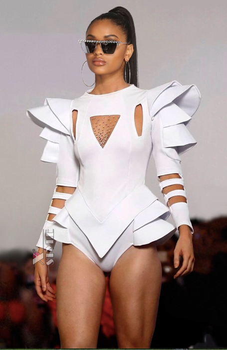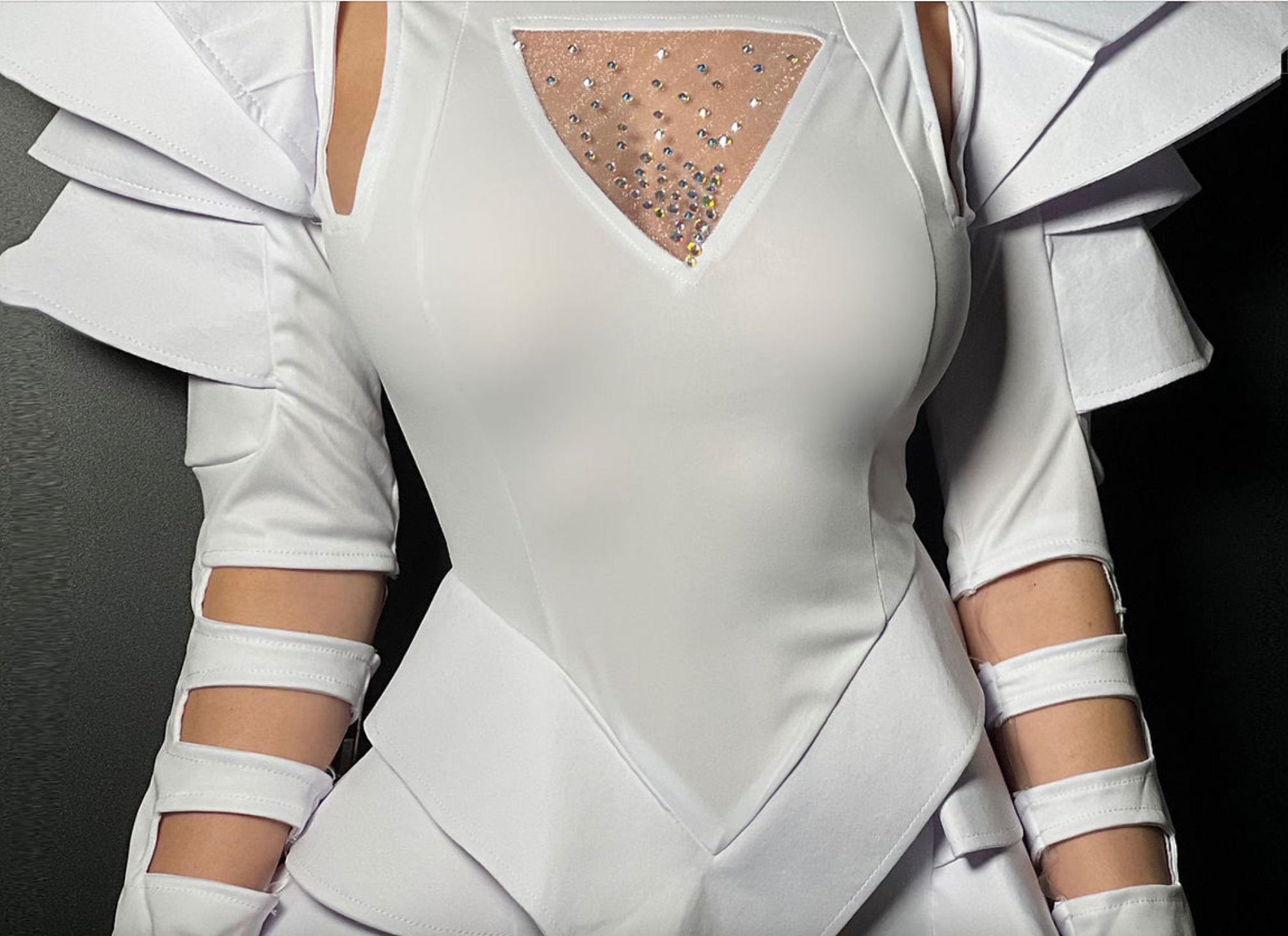 Combinaison body blanche futuriste pour Festival Gaga World All White Party