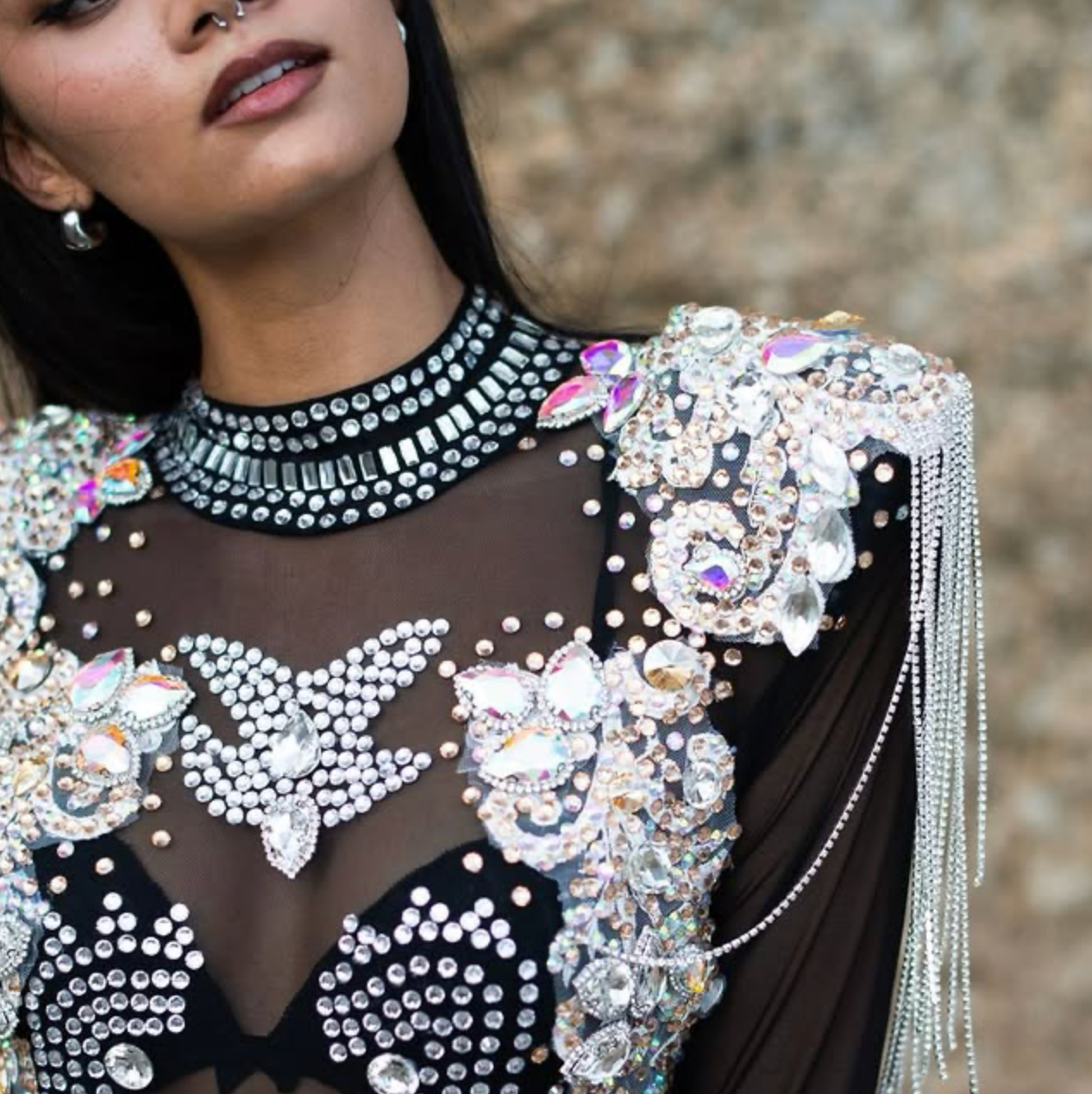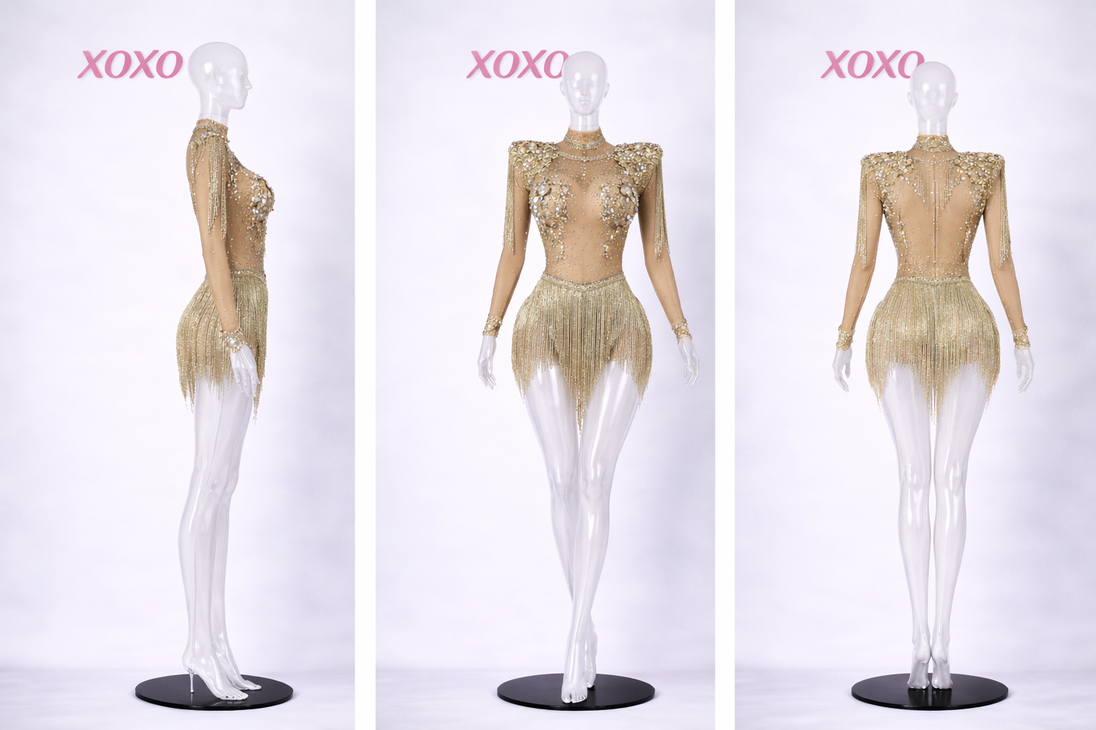 Si vous recherchez un body ou combinaison à strass scintillants Avec son allure de cowgirl et son énergie festive, ce costume à franges et cristaux est un incontournable.