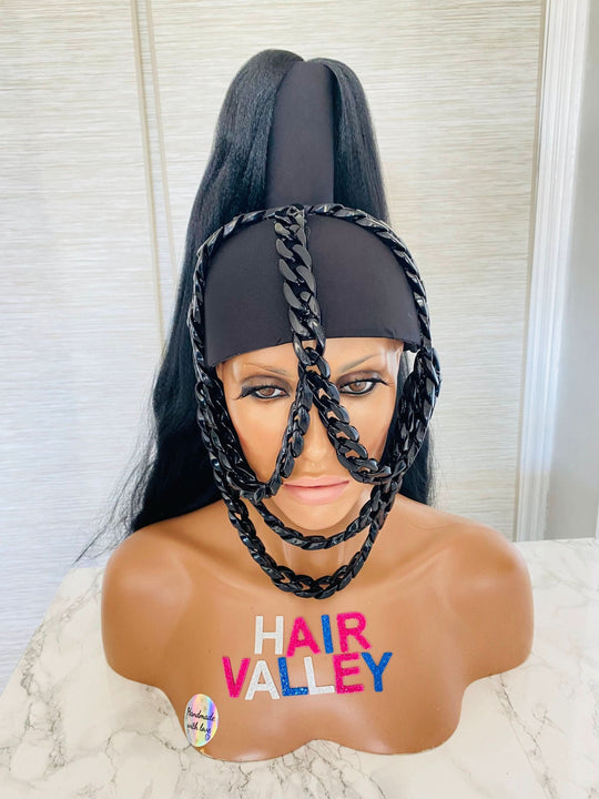 Coiffe Queue de Cheval Perruque Performance Chapeau Fête de Las Vegas Filles de Spectacle Chaîne Déesse Gothique Carnaval Costume de Reine Drag