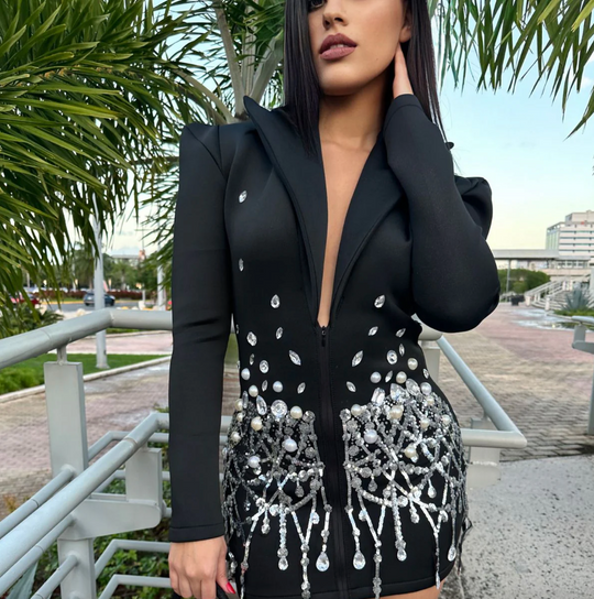 Robe en strass, robe de fête d'anniversaire, veste en cristal, Blazer, Costume de fête de spectacle